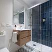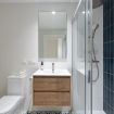 El apartamento incluye dos baños completos con un diseño moderno, lo cual garantiza funcionalidad y confort para todos los ocupantes.