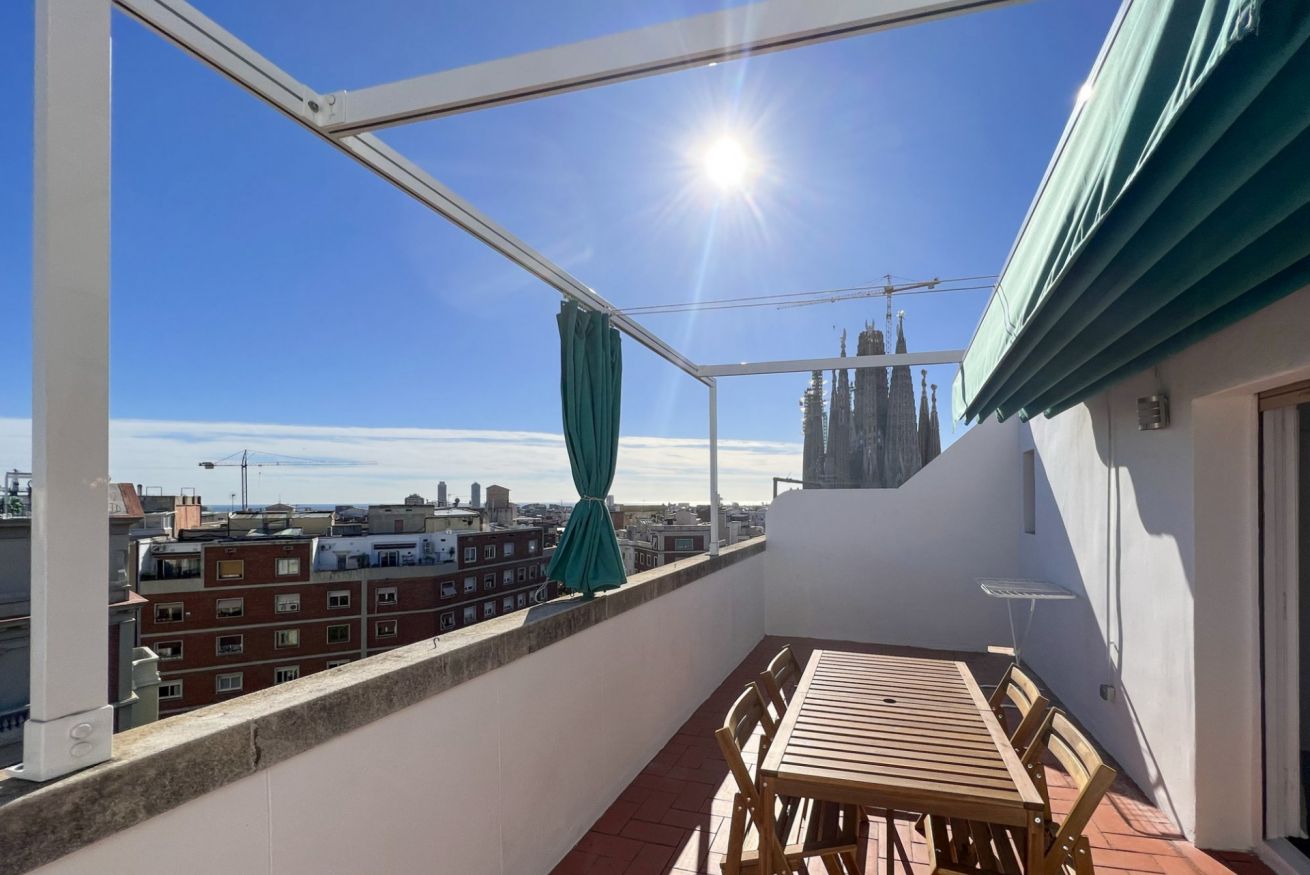 Hay una terraza conectado a esta unidad, que le ofrece hermosas vistas sobre Barcelona y la Sagrada Familia. Alojarse aquí le permite disfrutar de una taza de café en su terraza y después salir por la puerta de su casa y sumergirse en la cultura y la belleza de Barcelona. Está a pocos pasos o en metro de los cafés del patio, restaurantes, boutiques y algunos de los monumentos más emblemáticos e históricos de España.