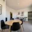 El área del salón se encuentra en el centro del apartamento, lo que hace que sea fácil moverse por el espacio. Encontrará sofás de alta gama, obras de arte abstracto y accesorios y decoración contemporánea. El espacio mayormente blanco acentuado con chasquidos de color es el lugar perfecto para ponerse al día con la conversación o ver la televisión.