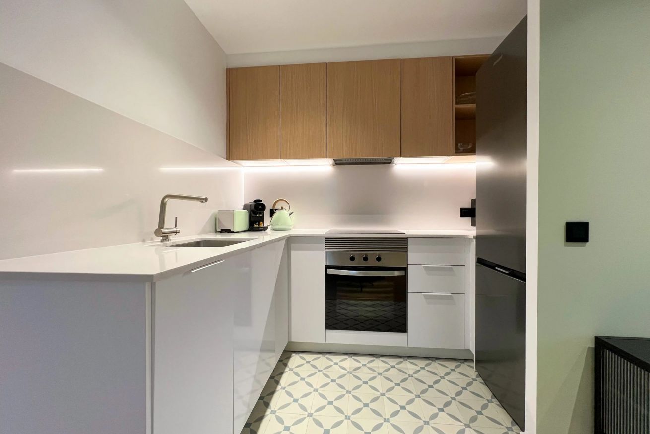 Uno de los mayores atractivos del apartamento es su balcón privado, que permite la entrada de luz natural y aporta una sensación de amplitud y frescura. Un rincón perfecto para tomar un café por la mañana o simplemente relajarse después de un día explorando la ciudad.