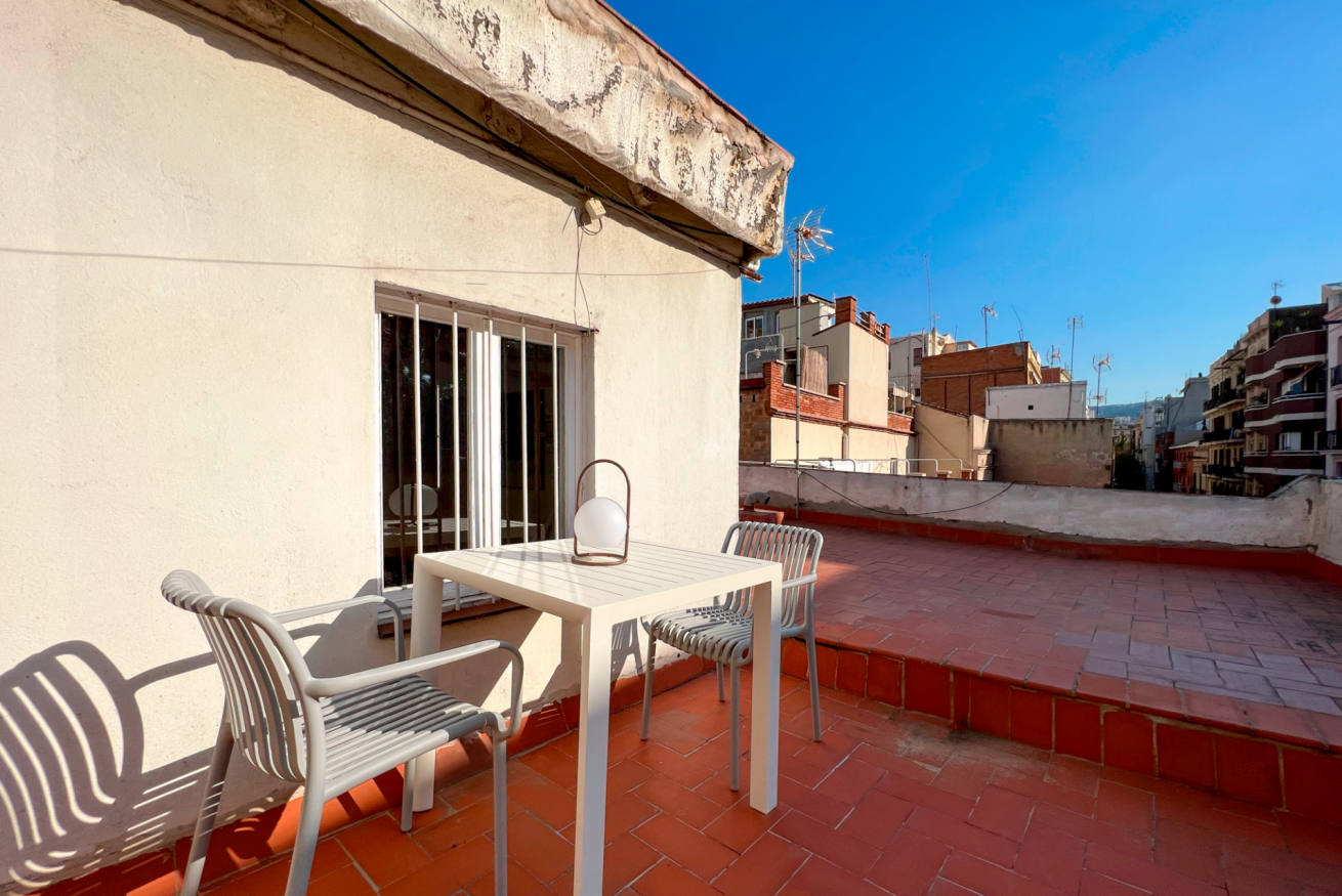Lo que distingue a este apartamento es su terraza en la azotea, donde podrás comenzar el día con una taza de café bajo el sol mientras te sumerges en el ambiente de la Rumba Catalana, un estilo de música y baile local. El apartamento en sí está decorado con pequeños toques que rinden homenaje a la Rumba Catalana, desde carteles que explican sus orígenes hasta siluetas de bailarines. Los códigos QR incluso te llevan a grabaciones de canciones de Rumba Catalana, lo que aumenta la experiencia de inmersión. En la azotea podrás encontrar un tendedero que puedes utilizar a tu conveniencia.
