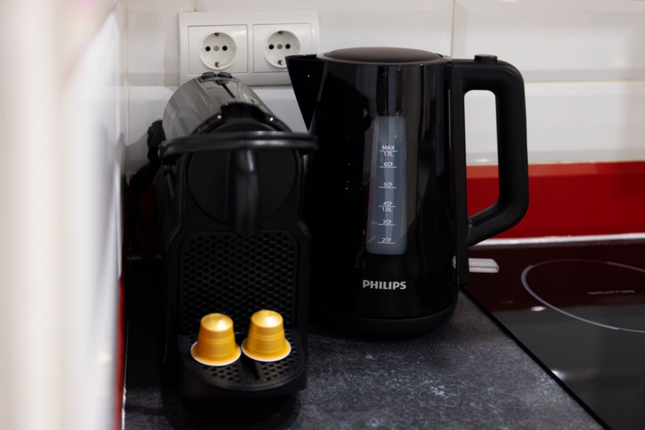 Relájate en su encantador balcón, un rincón ideal para disfrutar de un café o contemplar la puesta de sol sobre la ciudad. La cocina independiente cuenta con horno, microondas, cafetera y todo lo necesario para preparar tus platos favoritos.