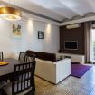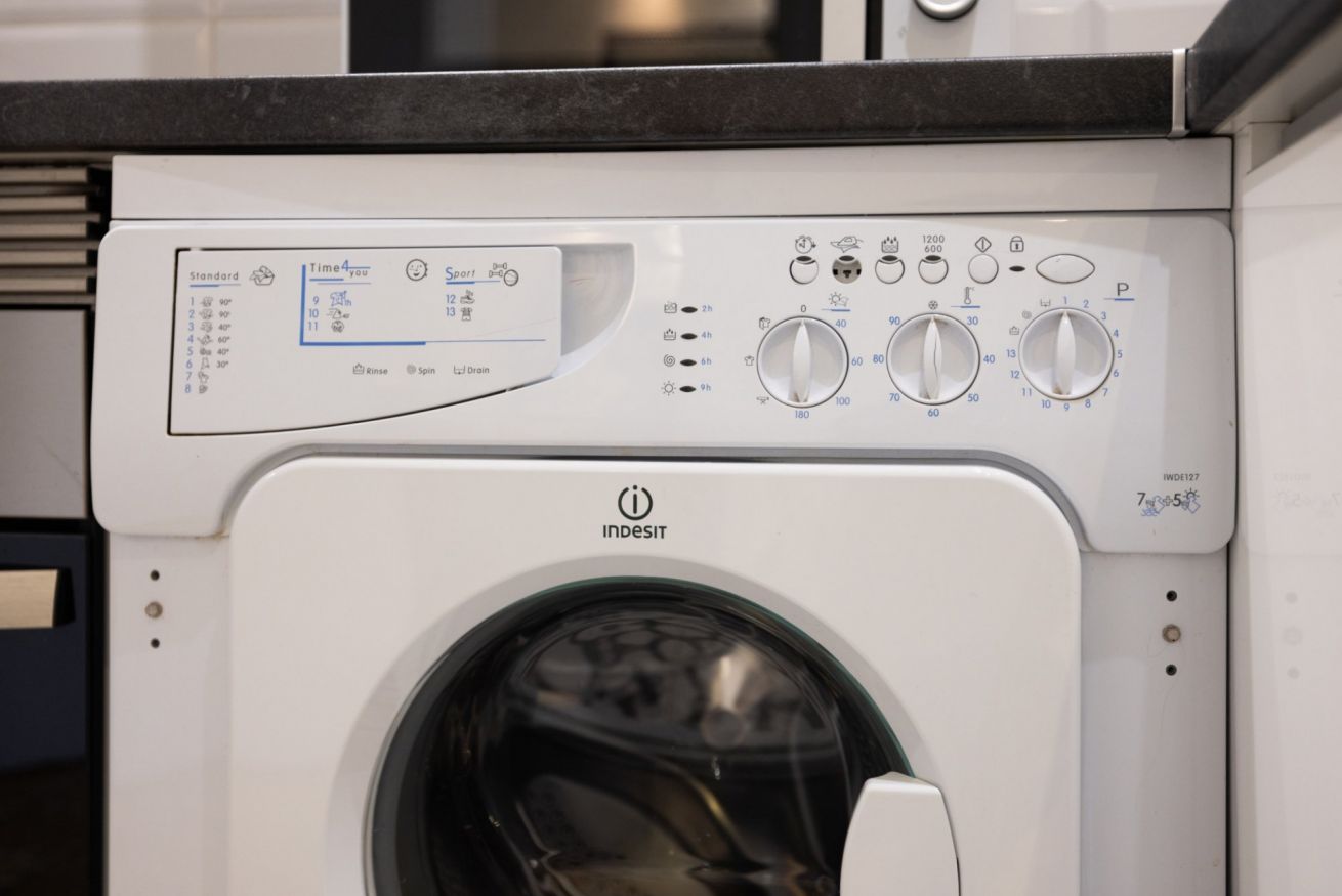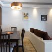El salón-comedor ofrece un espacio amplio y luminoso, con un cómodo sofá, TV y una mesa ideal tanto para compartir comidas como para trabajar. El baño está equipado con ducha y agua caliente para tu confort.