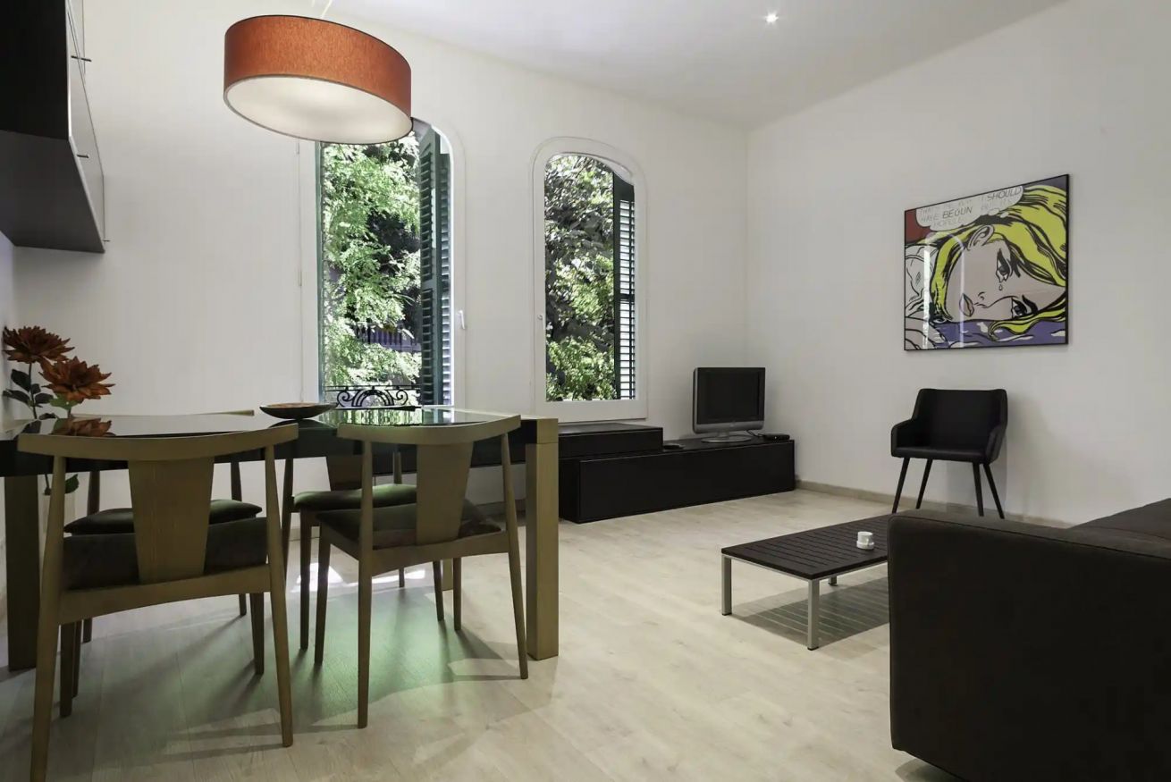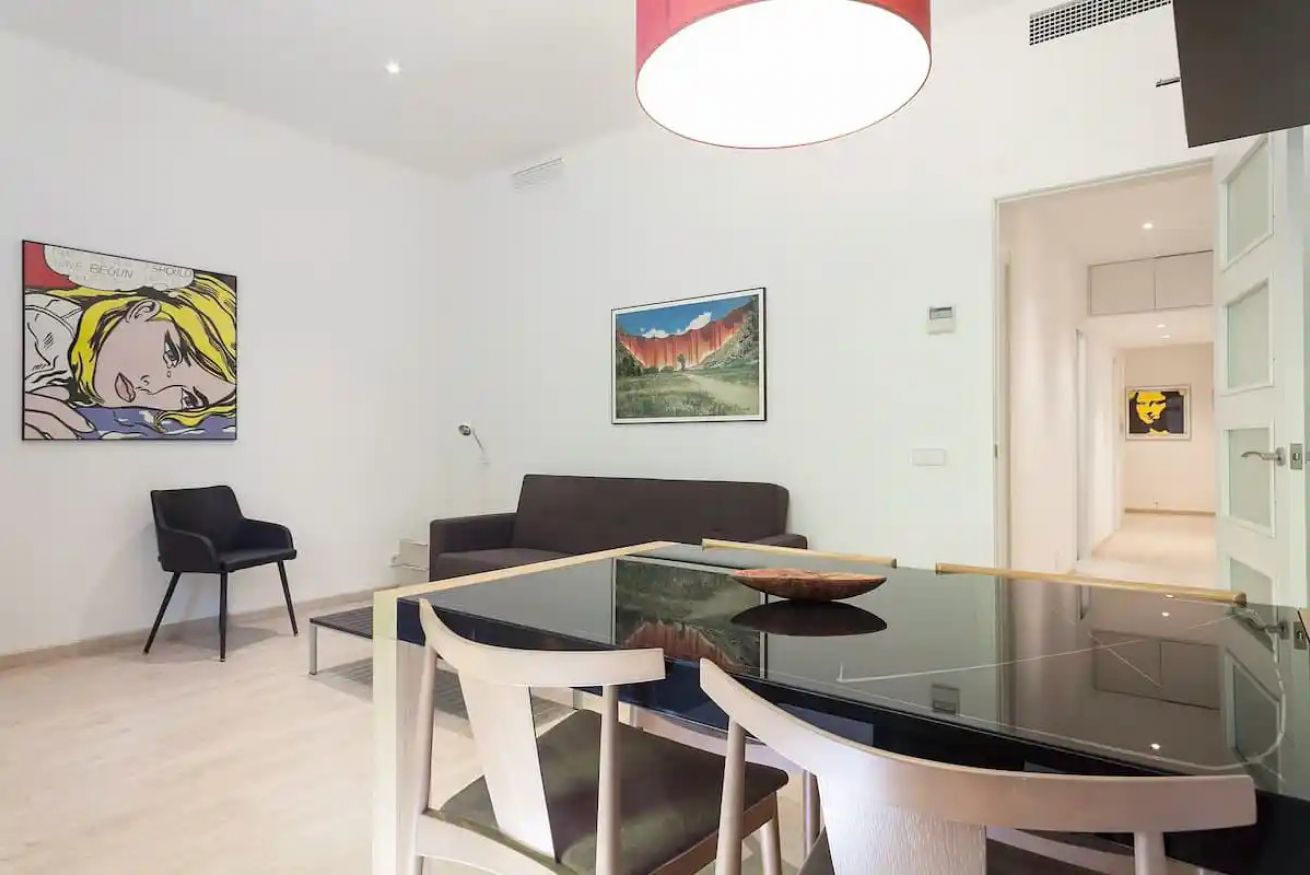 Este precioso apartamento en Barcelona dispone de dos dormitorios y un sofá cama en el salón. Ambas habitaciones tienen una cama doble de alta calidad o dos camas individuales, ropa de cama de marca, iluminación suave y arte contemporáneo. Las ventanas son realmente grandes y le proporcionan una enorme cantidad de luz para comenzar el día correctamente. Las habitaciones son cálidas y acogedoras, y un gran lugar para relajarse después de explorar la hermosa ciudad.