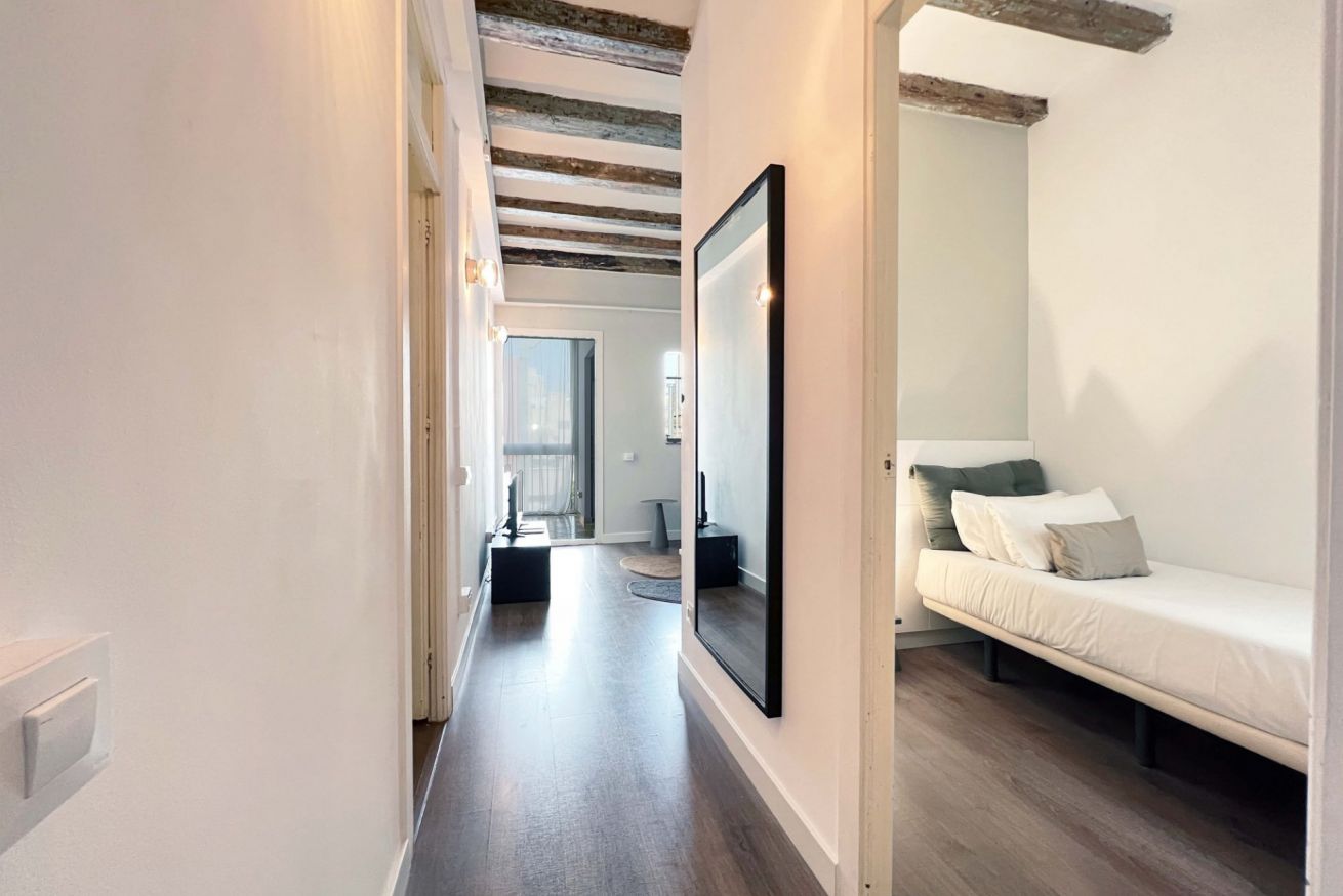 Este impresionante apartamento en Barcelona cuenta con 3 habitaciones y un sofá cama. El primer dormitorio está equipado con una cama doble de alta calidad, ropa de cama de marca y suave iluminación natural. Las ventanas son grandes y proporcionan a la habitación una luz natural que asegura que el día comience de la mejor manera. El segundo y tercer dormitorio están equipados con camas individuales, ideales para niños o amigos. Las habitaciones son cálidas y acogedoras, y un excelente lugar para relajarse después de explorar la hermosa ciudad.
