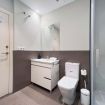 Esta encantadora unidad tiene 1 baño completo. Este pequeño baño minimalista tiene todo lo que necesitas, desde toallas hasta un kit de inicio de artículos de tocador.