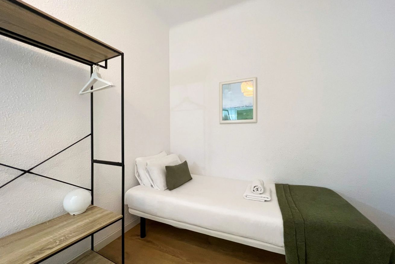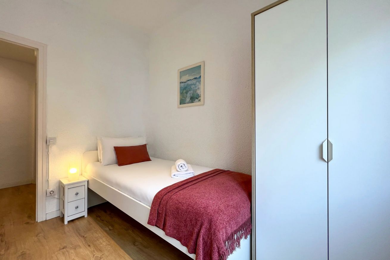 Este precioso apartamento en Barcelona dispone de cuatro habitaciones con capacidad para 5 personas. Dos habitaciones tienen una cama doble de alta calidad, ropa de cama de marca, iluminación suave y arte contemporáneo y las otras dos tienen una cama individual. Las ventanas son muy grandes y ofrecen una vista impresionante de la famosa Sagrada Familia de Gaudí. Las habitaciones son cálidas y acogedoras, y un gran lugar para relajarse después de explorar la hermosa ciudad.
