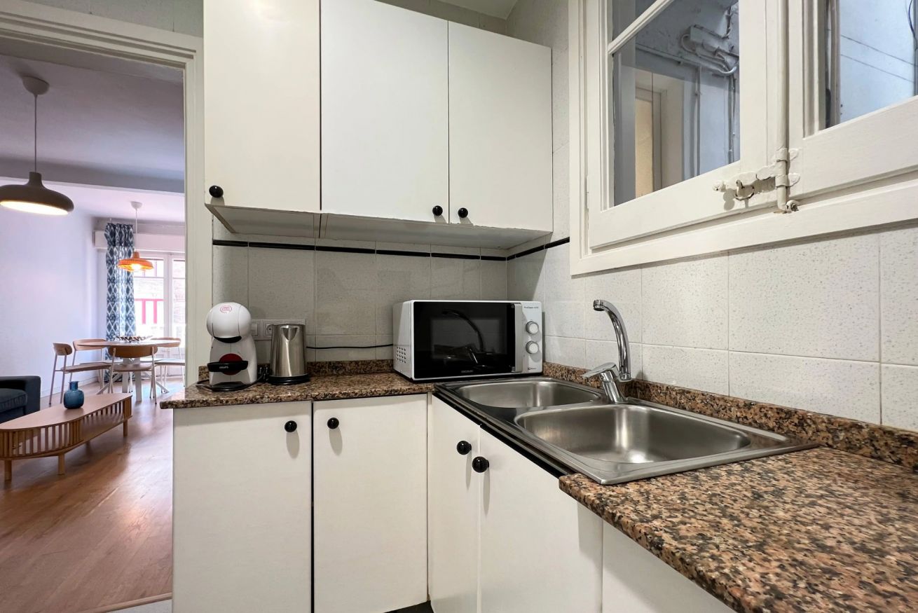Si bien es posible que desee pasar su tiempo explorando los famosos restaurantes de Barcelona, a veces no hay nada como una comida casera. Y este apartamento cuenta con una cocina totalmente amueblada con todo lo necesario para facilitar la preparación de las comidas. Los gabinetes personalizados ofrecen mucho espacio para almacenar los comestibles favoritos de su familia, y los electrodomésticos modernos, facilitan la preparación de comidas para su hambrienta tripulación.