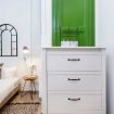 El salón se encuentra en el centro del apartamento, lo que facilita moverse por el espacio. Encontrará sofás de alta gama, obras de arte abstractas y accesorios y decoración contemporáneos. El espacio en su mayoría blanco acentuado con toques de color es el lugar perfecto para ponerse al día con una conversación o mirar televisión.