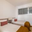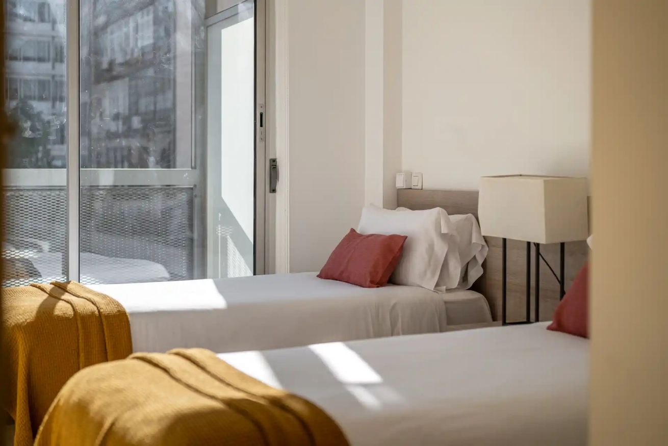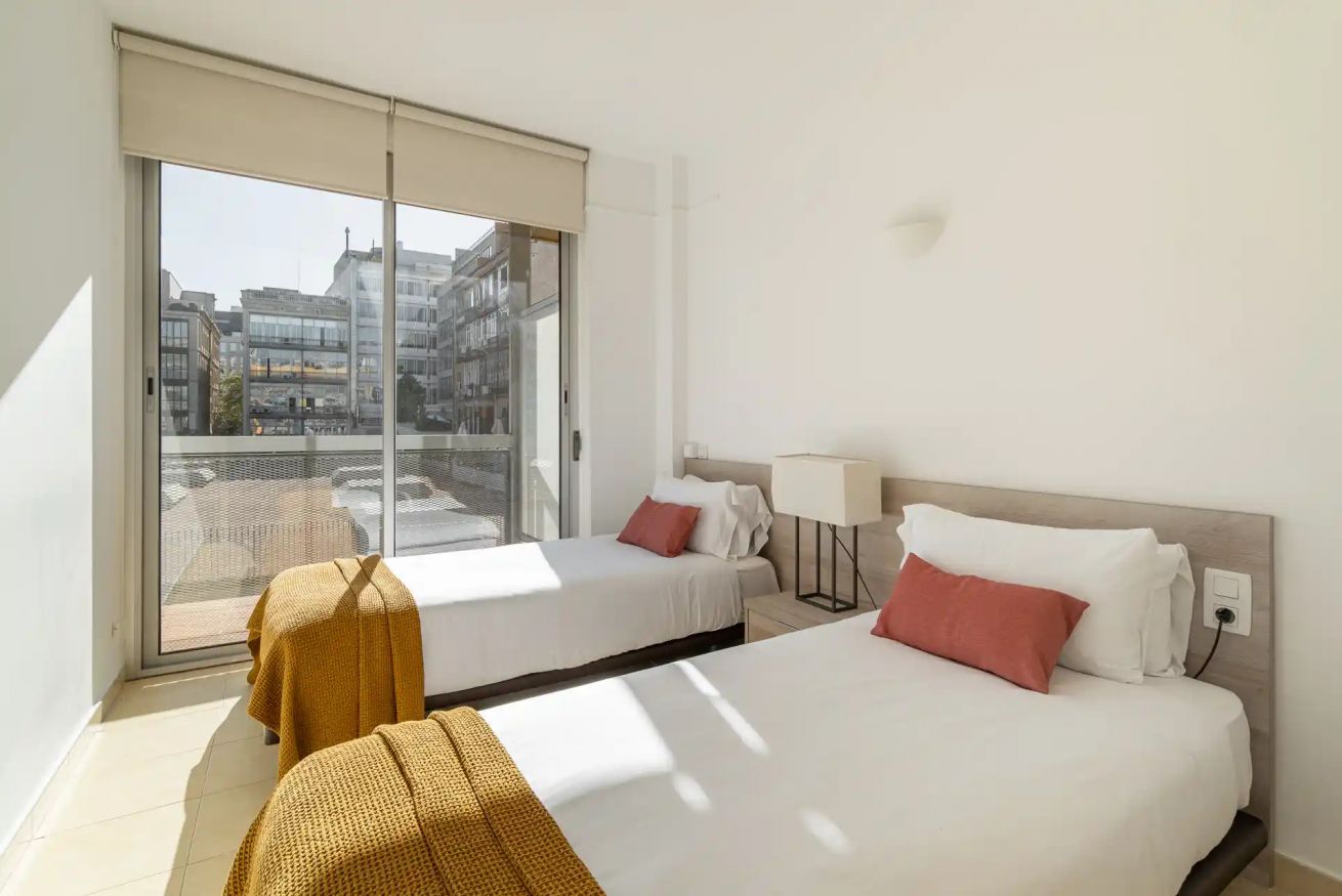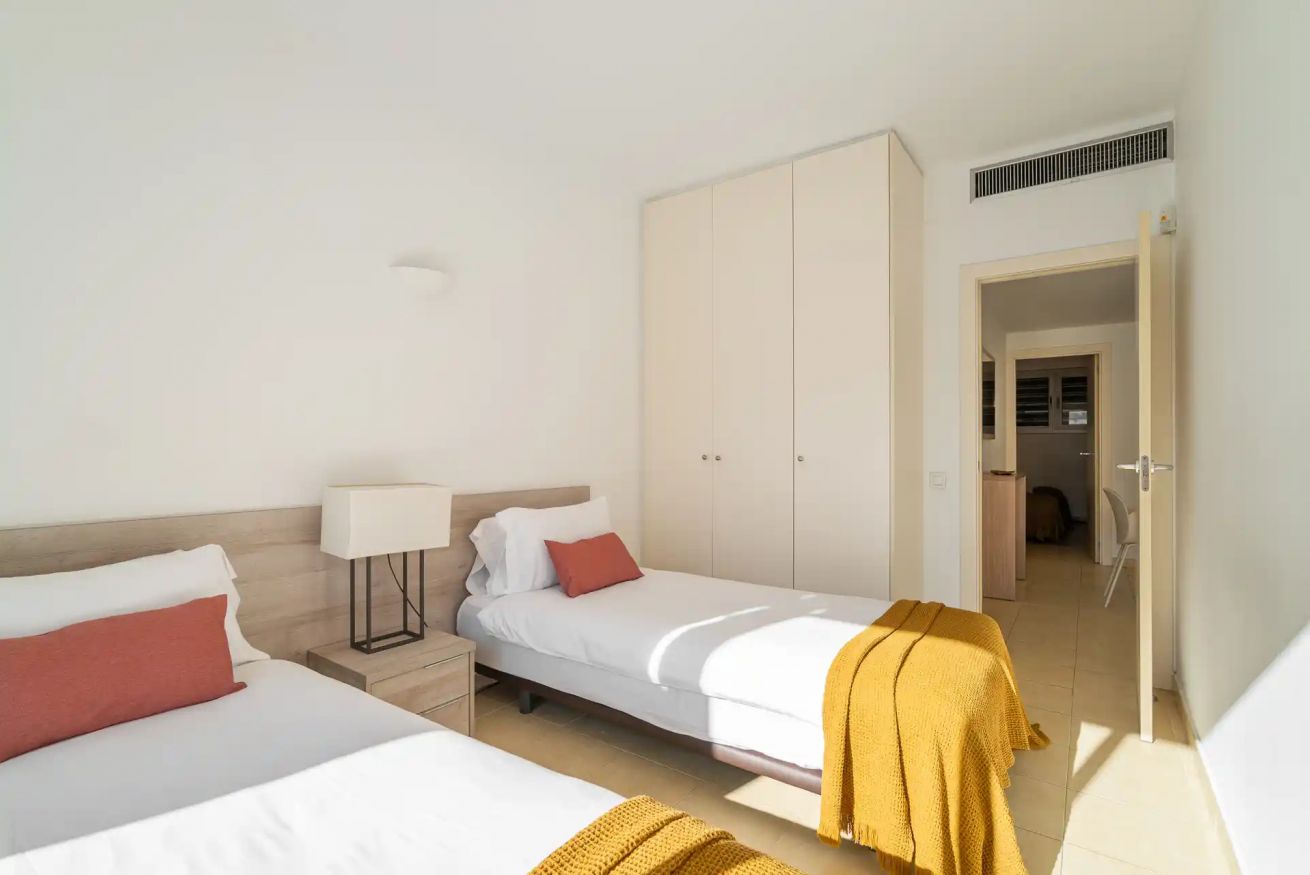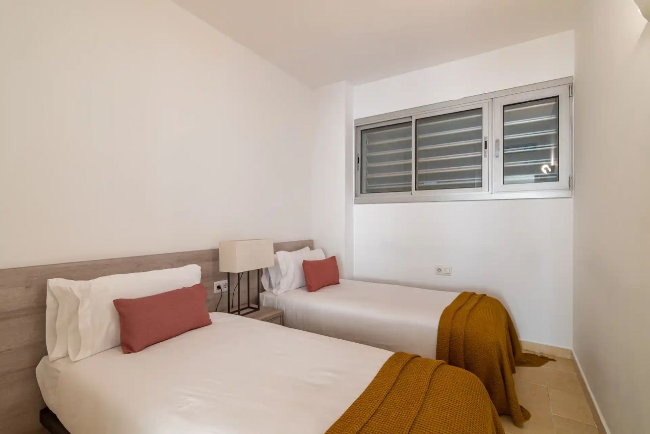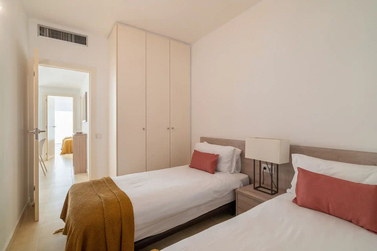 Este apartamento cuenta con tres habitaciones, una con cama doble y las otras dos con dos camas individuales. A su vez, posee un sofá cama doble para dar comodidad a 7 viajeros.