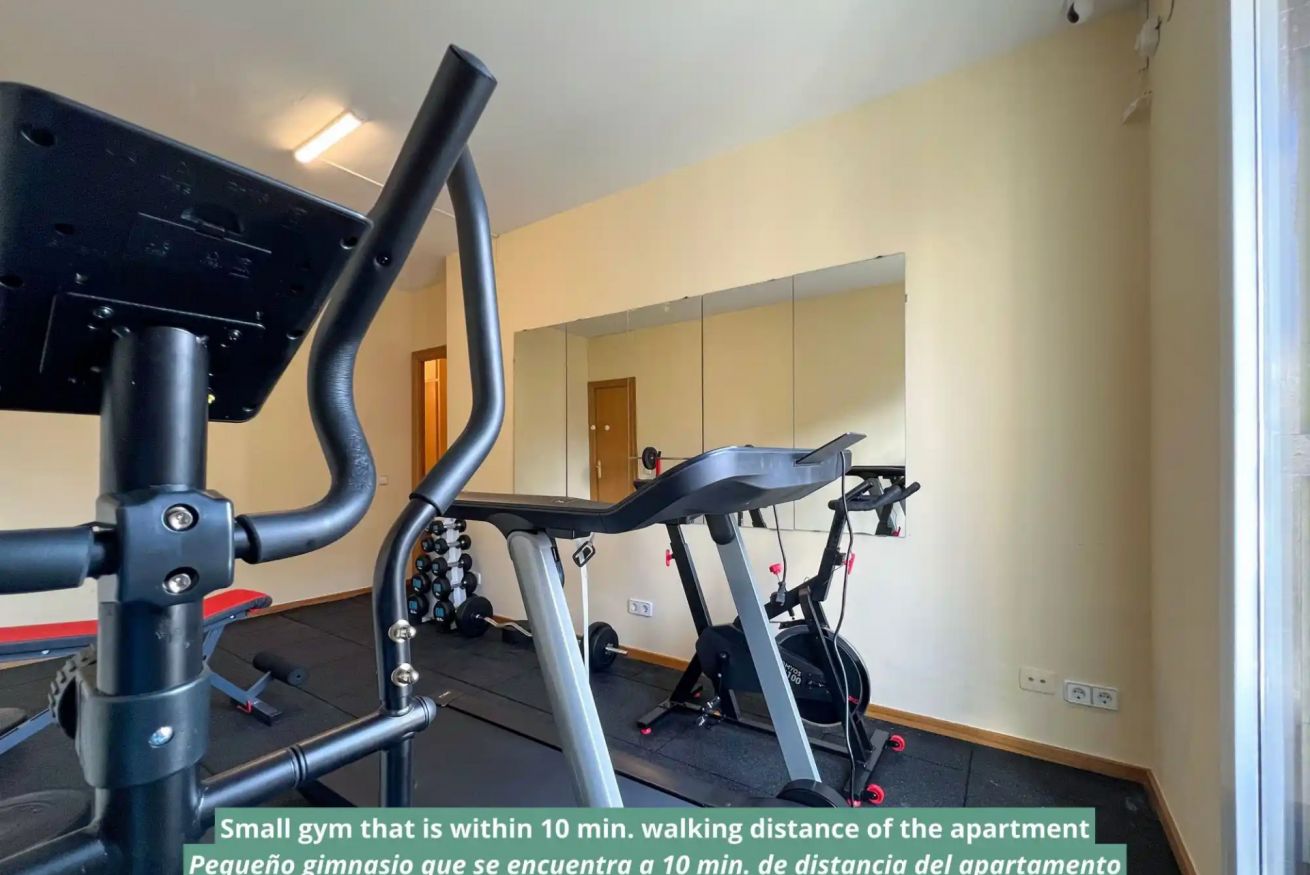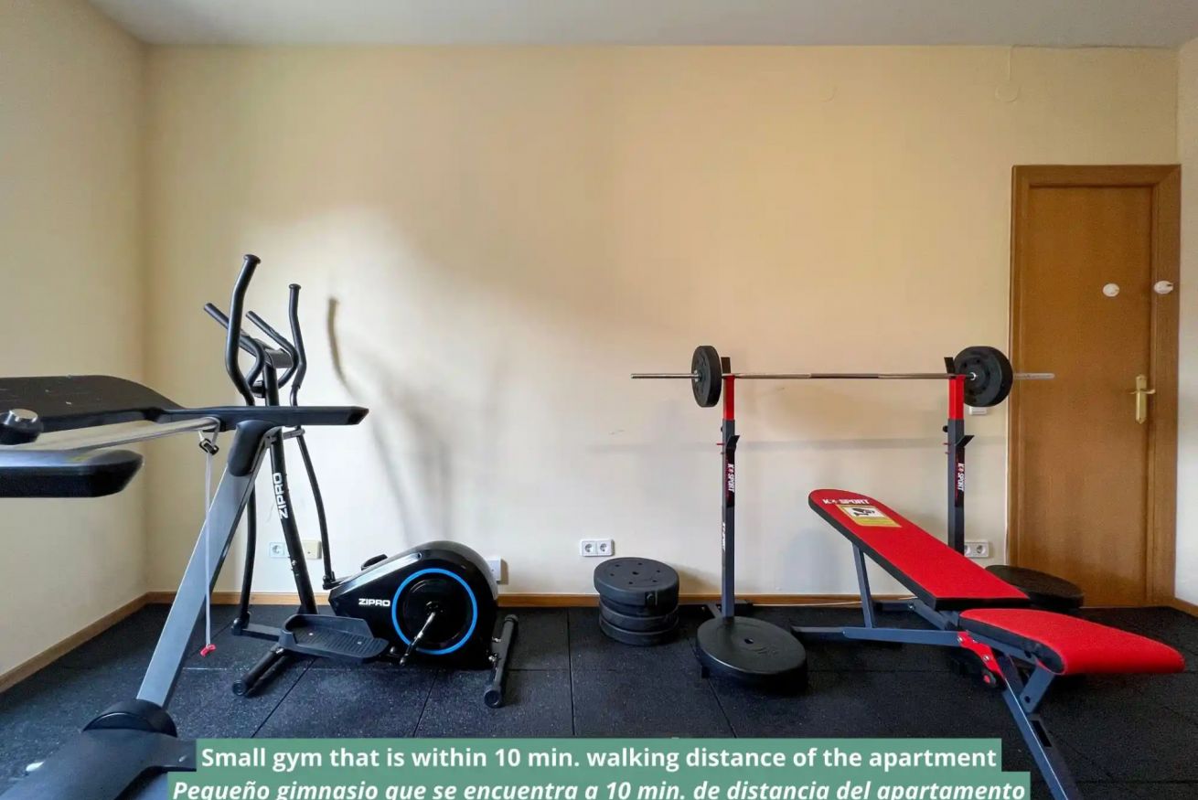 Nuestro pequeño gimnasio se encuentra a 10 minutos a pie del apartamento.