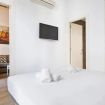 El apartamento dispone de 2 amplios dormitorios, cada uno equipado con una cama matrimonial. Estos espacios están diseñados con un estilo moderno y delicado, proporcionando un ambiente tranquilo y elegante para descansar. La luz natural inunda cada rincón del apartamento, creando un ambiente luminoso y acogedor que te hará sentir como en casa.