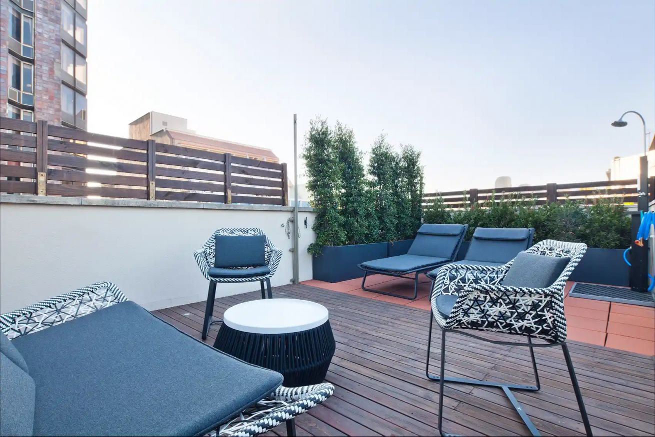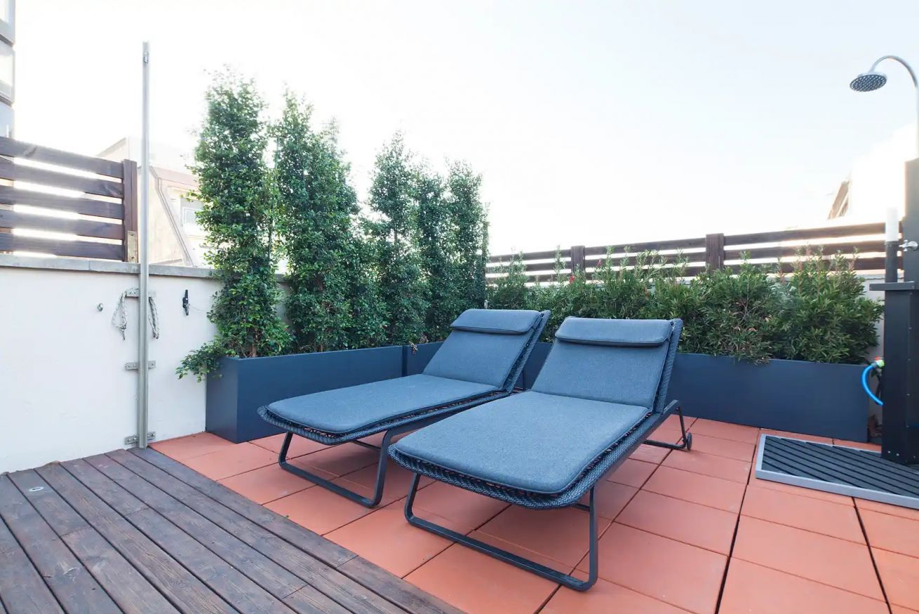 Este apartamento viene con una terraza privada en la azotea con cómodas tumbonas y una zona chill out. La terraza es ideal para disfrutar de una conversación con su familia y amigos con una buena bebida. En la mañana usted puede tomar su café mientras disfruta del sol.
