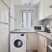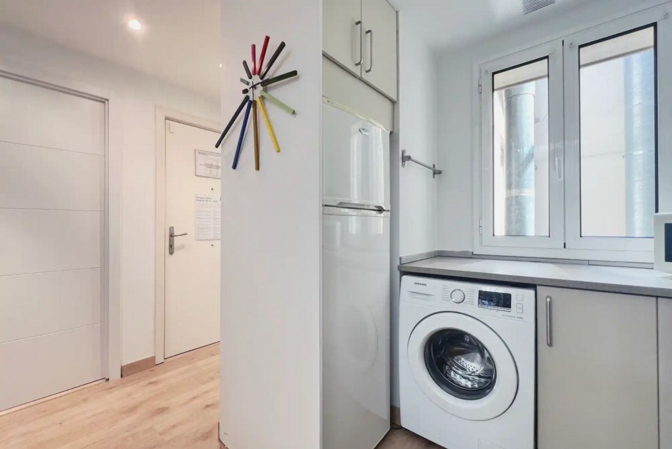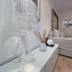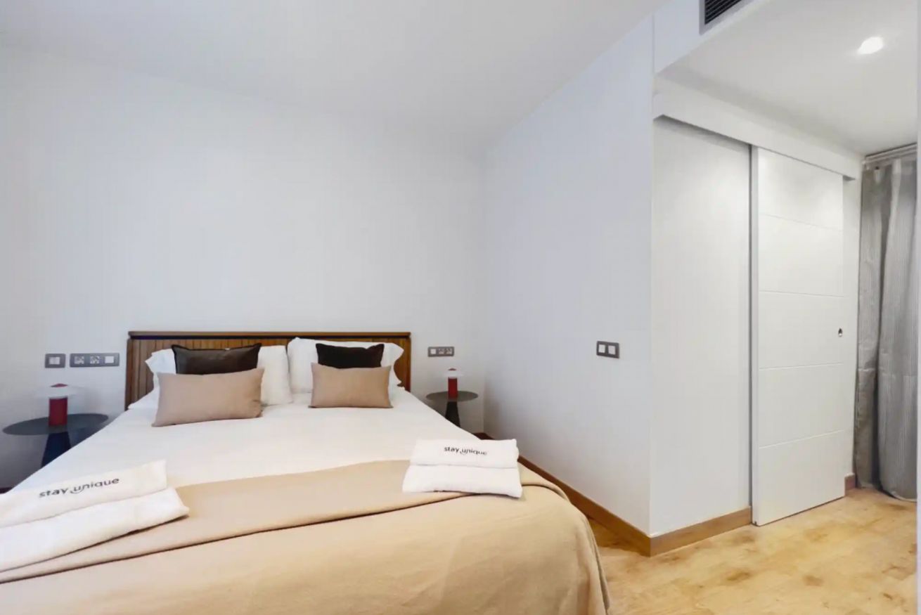 Este impresionante apartamento cuenta con 2 dormitorios que permiten vivir hasta 4 personas. El primer dormitorio está separado del salón por una gran puerta corredera y está equipado con una cama doble de alta calidad, ropa de cama de marca y una suave iluminación natural. Las ventanas son grandes y proporcionan a la habitación una impresionante luz natural que asegurará que el día comience de la manera correcta. El segundo dormitorio está equipado con una cama doble. Los dormitorios son cálidos y acogedores, y un gran lugar para relajarse después de explorar la hermosa ciudad.