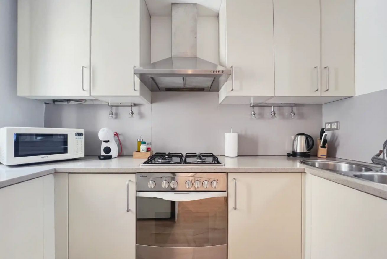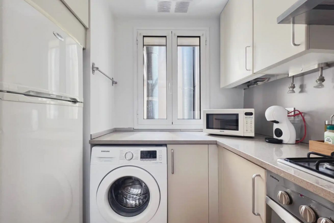 Aunque quieras pasar tu tiempo explorando los famosos restaurantes de la ciudad, a veces no hay nada como una comida casera. Y este apartamento cuenta con una cocina totalmente amueblada con todo lo necesario para facilitar la preparación de las comidas.