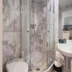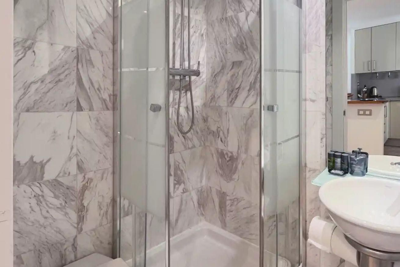 Este espacioso apartamento tiene 2 baños completos. El dormitorio 1 tiene un baño en suite con combinación de bañera y ducha. Hay un segundo baño con una ducha. El baño tiene todo lo necesario, desde toallas hasta artículos de aseo.