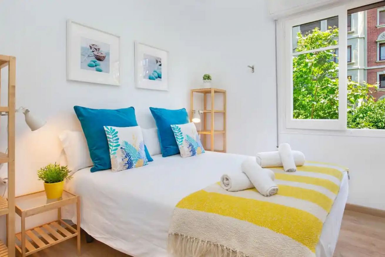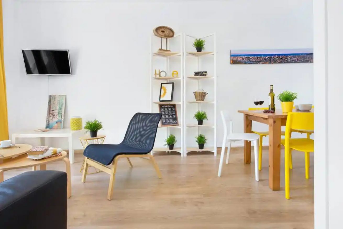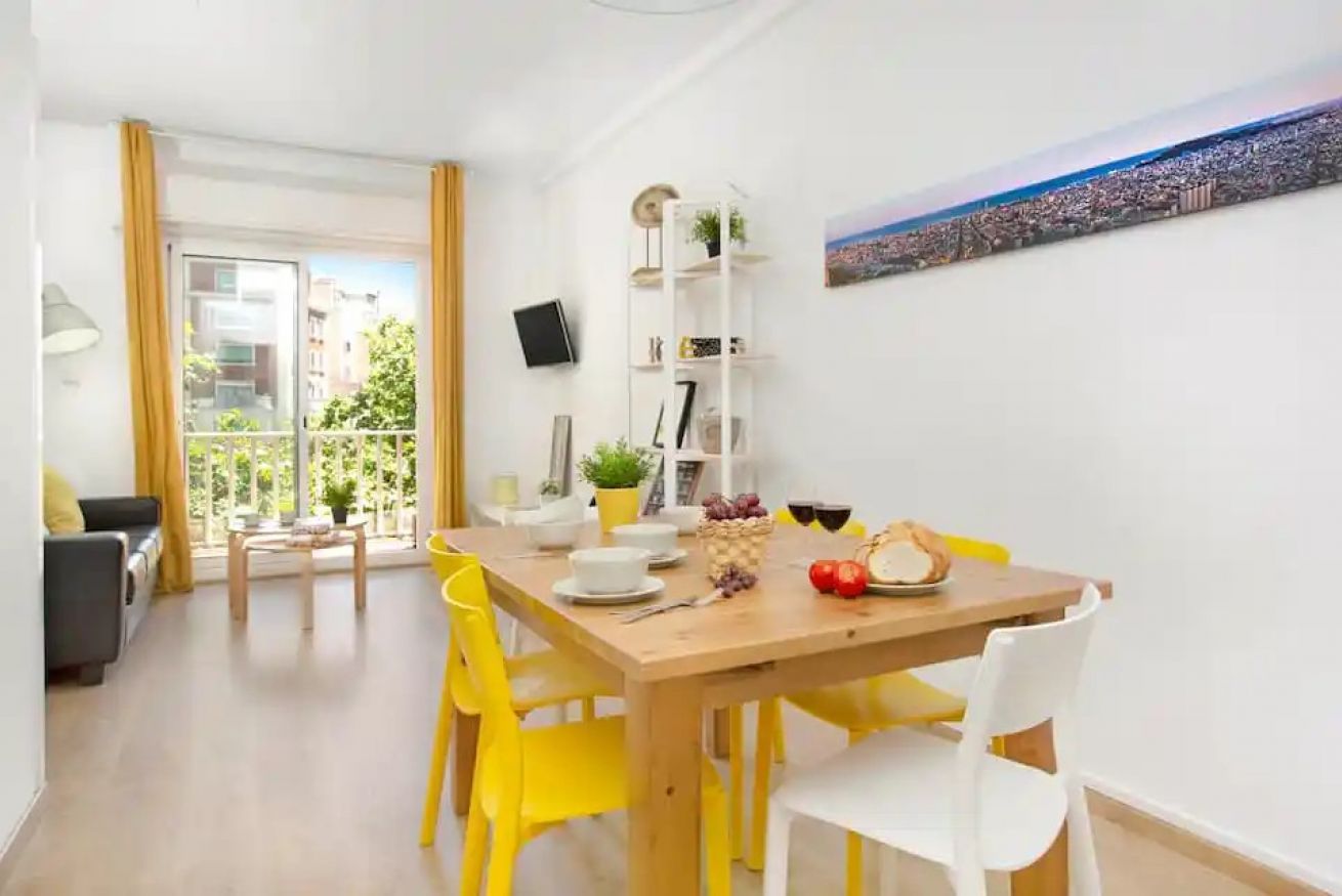 Amplia zona de comedor con capacidad para seis. Disfrute del sabor de los productos frescos locales españoles que puede seleccionar en el Mercado de la Sagrada Familia, desde la comodidad de su apartamento con familiares y amigos, o aproveche el espacio para crear su ambiente de trabajo perfecto para su trabajo de oficina. La cocina recientemente renovada incluye todos los electrodomésticos modernos para todas las necesidades, como nevera y congelador, tostadora, horno microondas, horno, estufa de inducción y lavadora y un juego completo de utensilios de cocina que incluye: cafetería dolce gusto y hervidor de agua. Este apartamento moderno y sofisticado también contiene elementos como Internet Wi-Fi, aire acondicionado, ventiladores, un televisor LED LG de 32 pulgadas, reproductor de DVD y CD con radio, plancha y tabla de planchar, secador de pelo. Ascensor disponible. Toallas y ropa de cama están disponibles a la llegada.