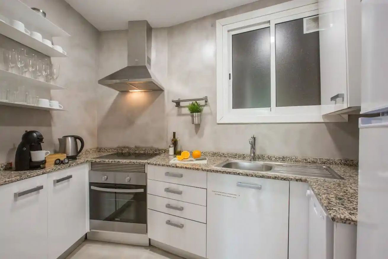 Si bien es posible que desee pasar su tiempo explorando los famosos restaurantes de Barcelona, ​​a veces no hay nada como una comida casera. Y este apartamento cuenta con una cocina totalmente amueblada con todo lo necesario para facilitar la preparación de comidas. Los gabinetes personalizados brindan mucho espacio para almacenar los alimentos favoritos de su familia, y los electrodomésticos modernos, incluido un lavaplatos silencioso, facilitan la preparación de comidas para su hambriento equipo.