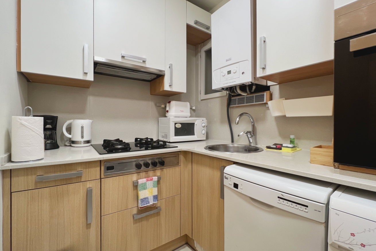 Aunque quieras pasar tu tiempo explorando los famosos restaurantes de la ciudad, a veces no hay nada como una comida casera. Y este apartamento cuenta con una cocina totalmente amueblada con todo lo necesario para facilitar la preparación de las comidas.