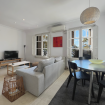 La zona de estar se encuentra en el centro del apartamento, por lo que es fácil moverse por el espacio. El apartamento tiene un bonito suelo y una decoración discreta de buen gusto.