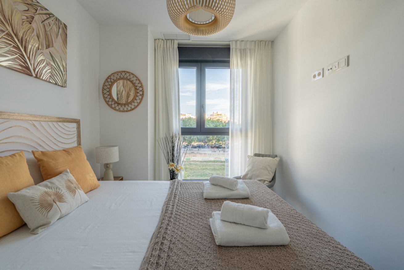 Este encantador piso situado en las prestigiosas Torres de Martiricos en Málaga ofrece una experiencia excepcional. Con capacidad para alojar cómodamente a 4 personas, esta vivienda está perfectamente distribuida con dos dormitorios; uno con cama de matrimonio, vestidor y baño ensuite y el otro con dos camas individuales, ideal para una familia o un grupo de amigos.