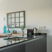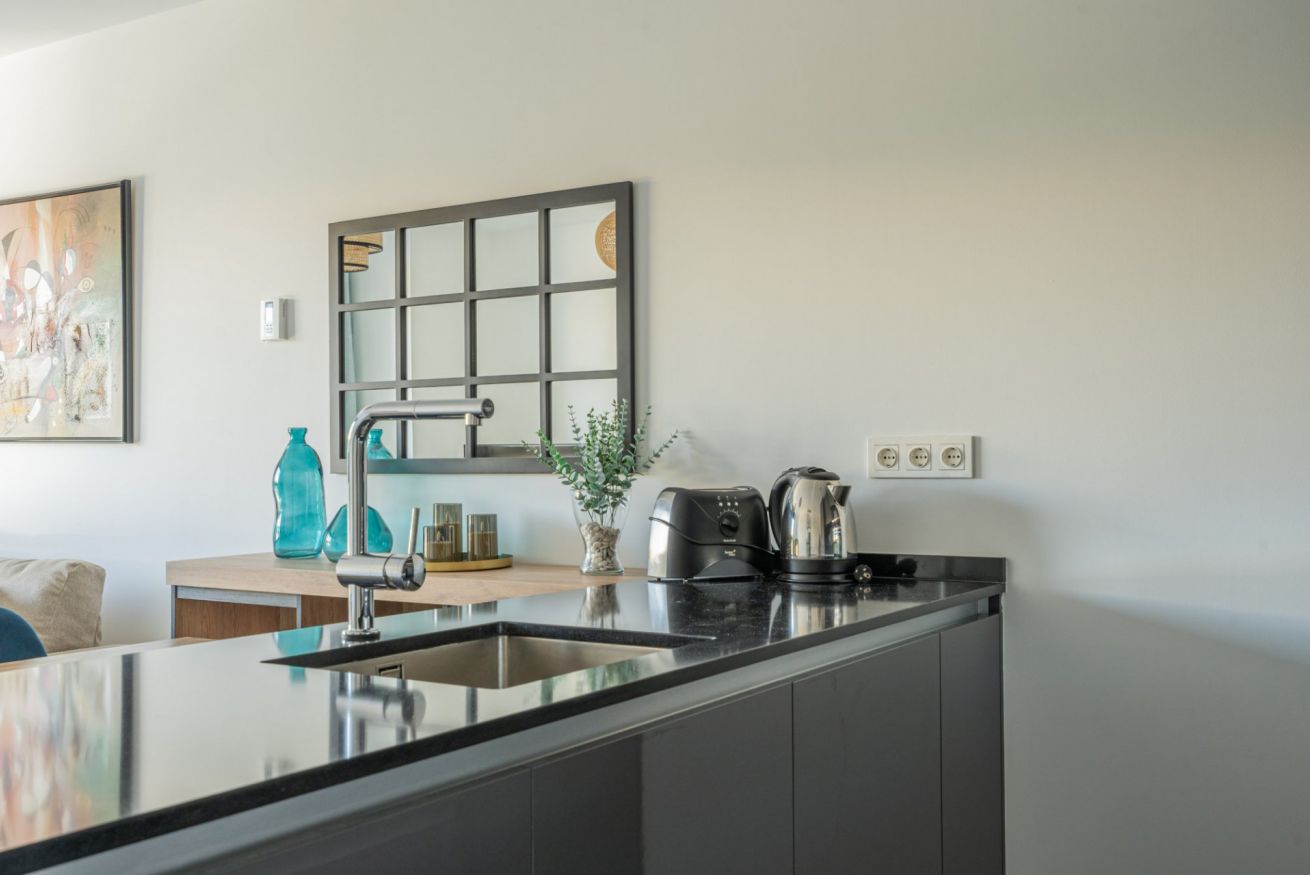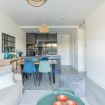 El apartamento cuenta con dos baños completos, asegurando privacidad y comodidad para todos los huéspedes. La cocina está completamente equipada con todos los electrodomésticos modernos necesarios para preparar deliciosas comidas, que se pueden disfrutar en el adyacente salón-comedor. Este espacio abierto está diseñado con un estilo acogedor y moderno, creando un ambiente cálido y hogareño.