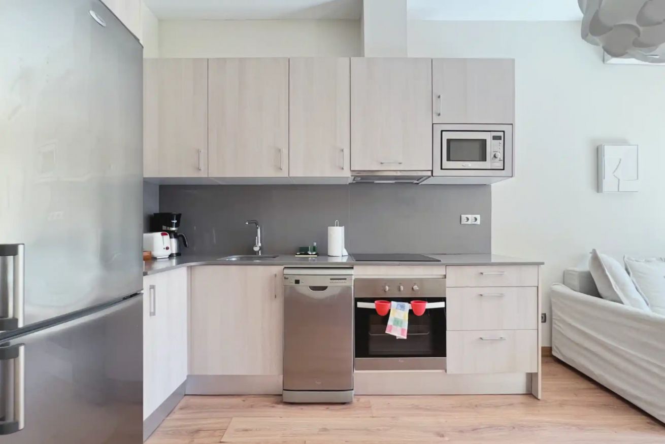Aunque quieras pasar tu tiempo explorando los famosos restaurantes de la ciudad, a veces no hay nada como una comida casera. Y este apartamento cuenta con una cocina totalmente amueblada con todo lo necesario para facilitar la preparación de las comidas.