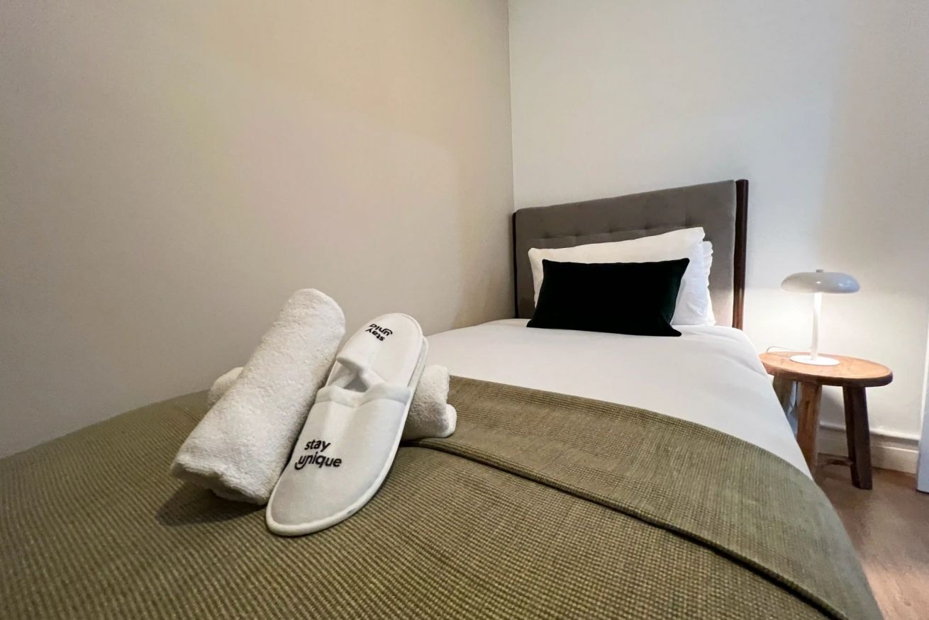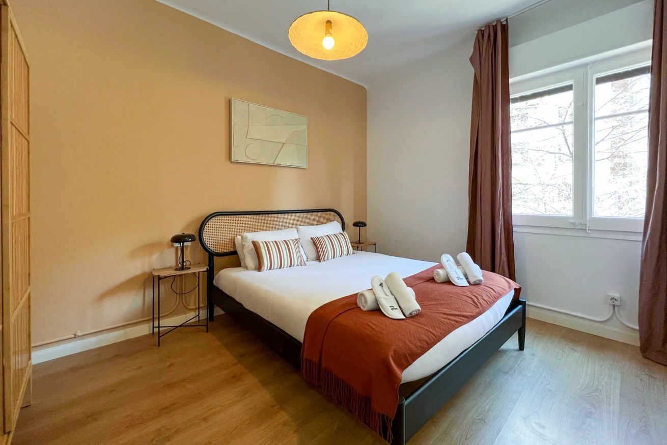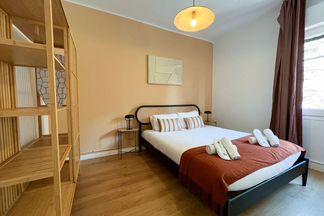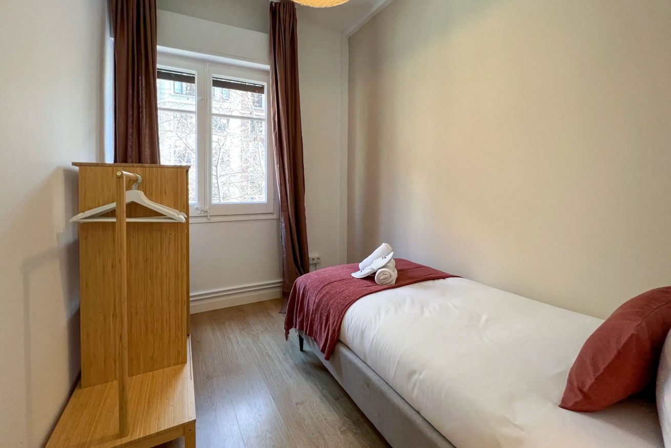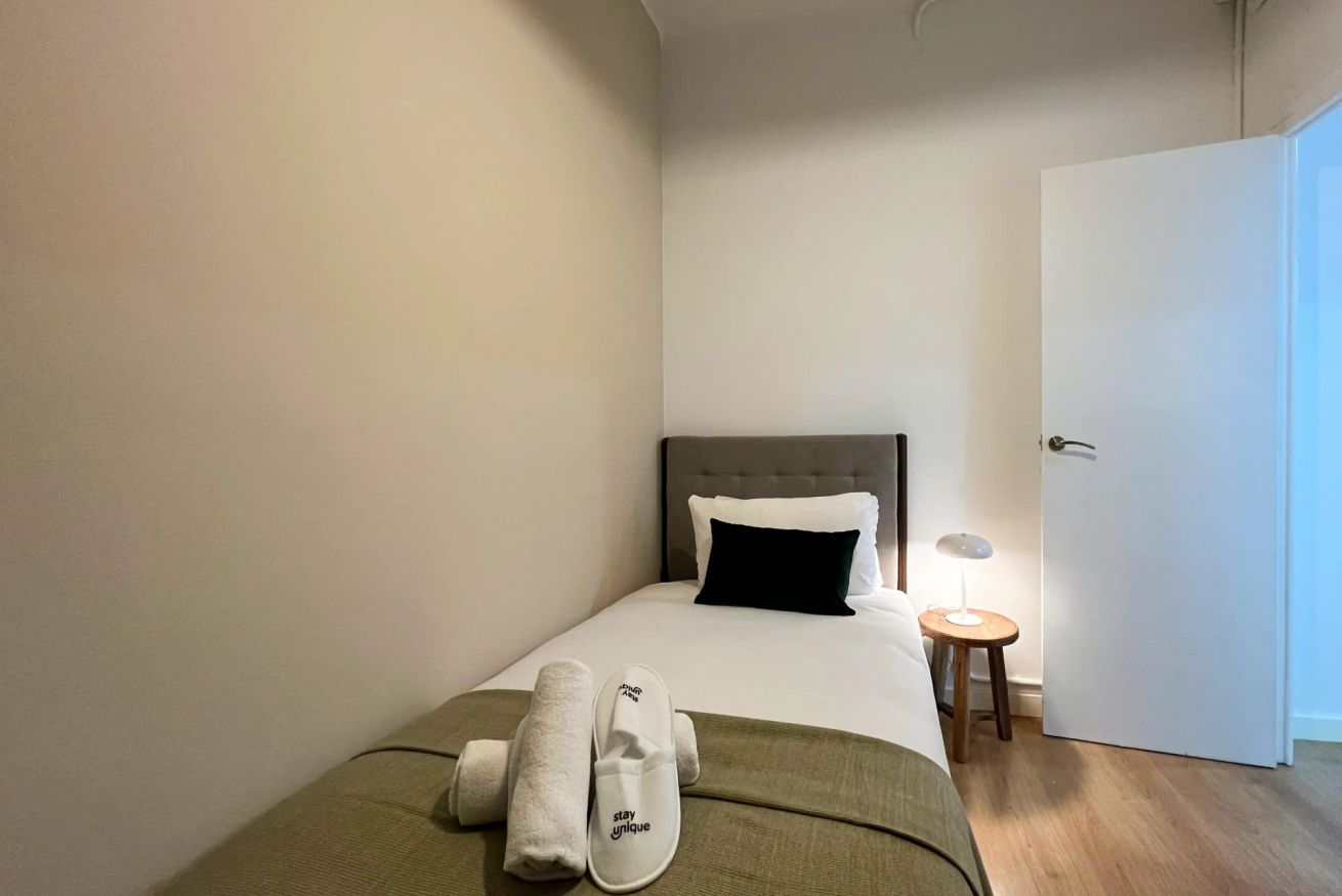 Este precioso apartamento en Barcelona dispone de 4 dormitorios, uno de ellos principal con cama de matrimonio, los otros 3 son individuales con sus propias habitaciones privadas, lo que lo hace perfecto para una familia de 5 personas, todas las habitaciones incluyen ropa de cama de alta calidad, un amplio armario y una mesita de noche, lo que lo hace adecuado para todas sus necesidades de almacenamiento. Las habitaciones son acogedoras y acogedoras, un gran lugar para relajarse después de explorar la hermosa ciudad.