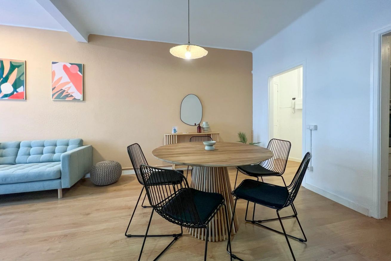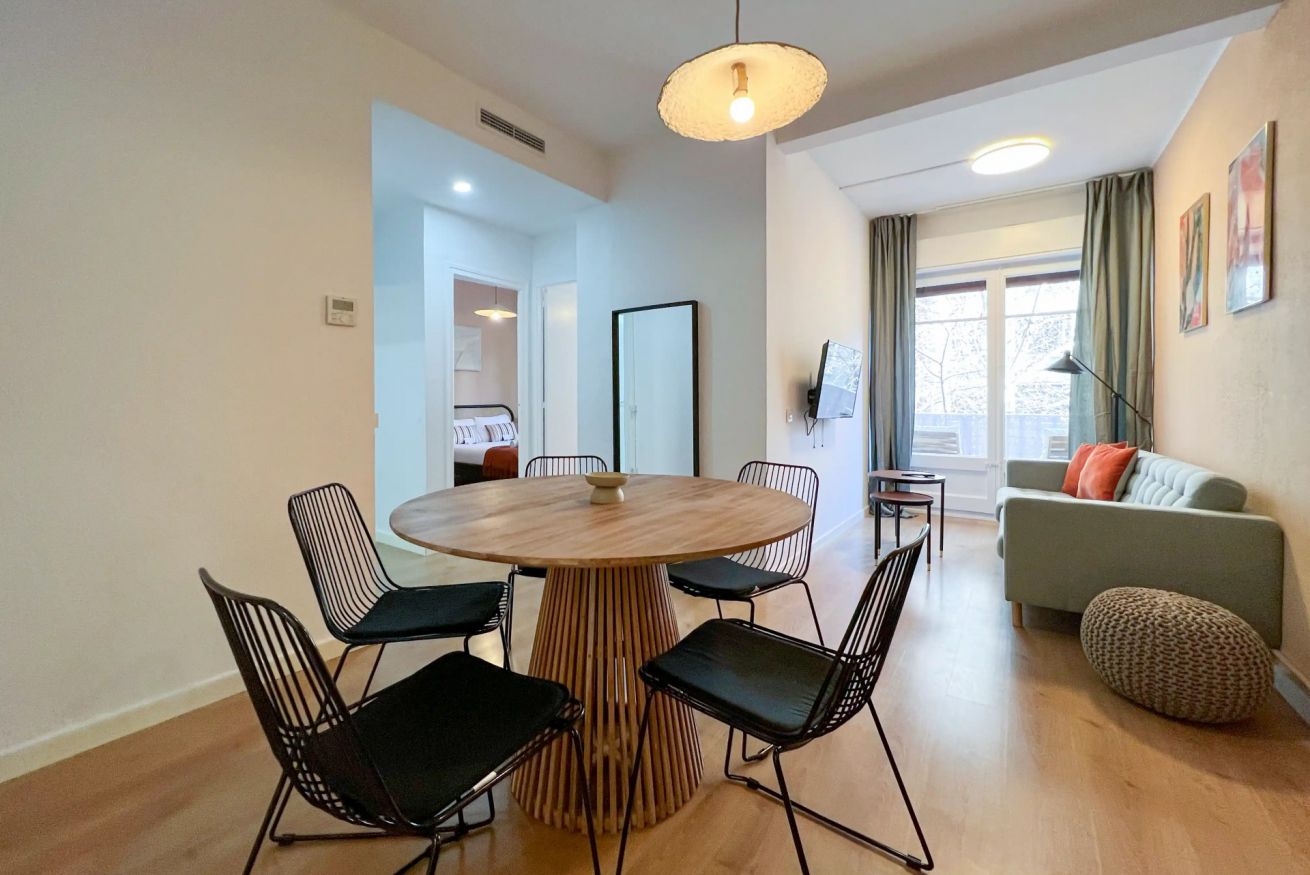 Aunque puede que quieras pasar el tiempo explorando los famosos restaurantes de Barcelona, existe la opción de una comida casera, ya que la cocina está equipada con todos los requisitos y comodidades, lo que te permite sentirte como en casa, lejos de casa. La sala de estar es muy espaciosa con un escritorio para trabajar o el sofá para una tarde relajada viendo la televisión, el salón es perfecto para todas las situaciones.