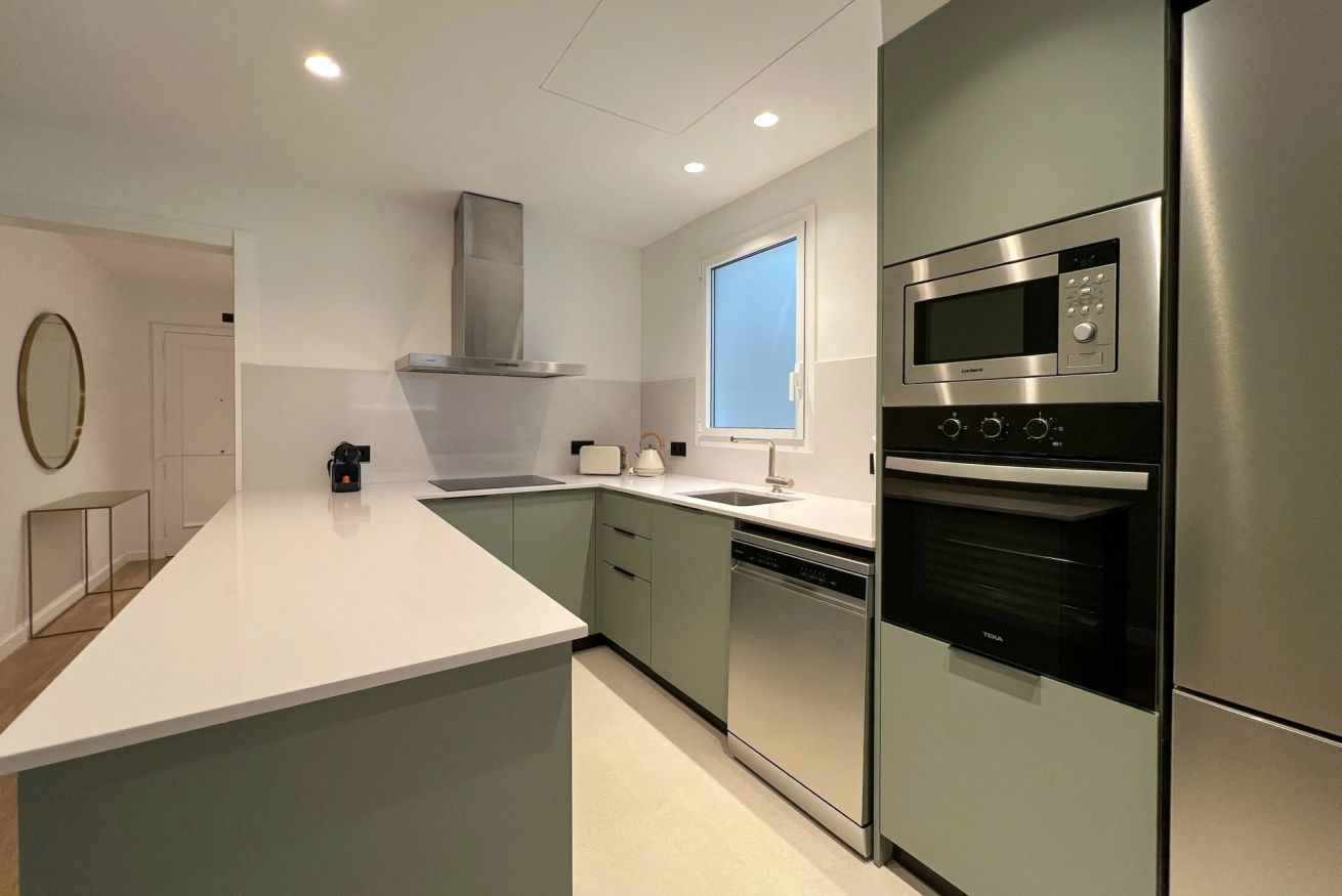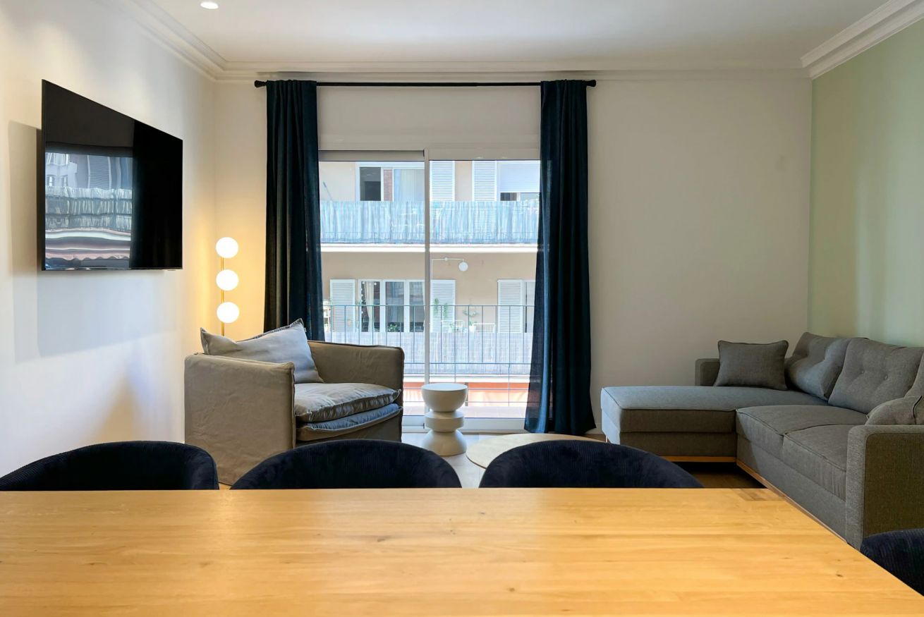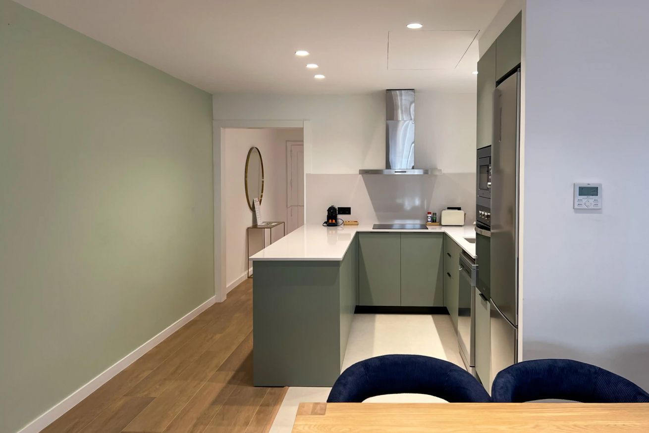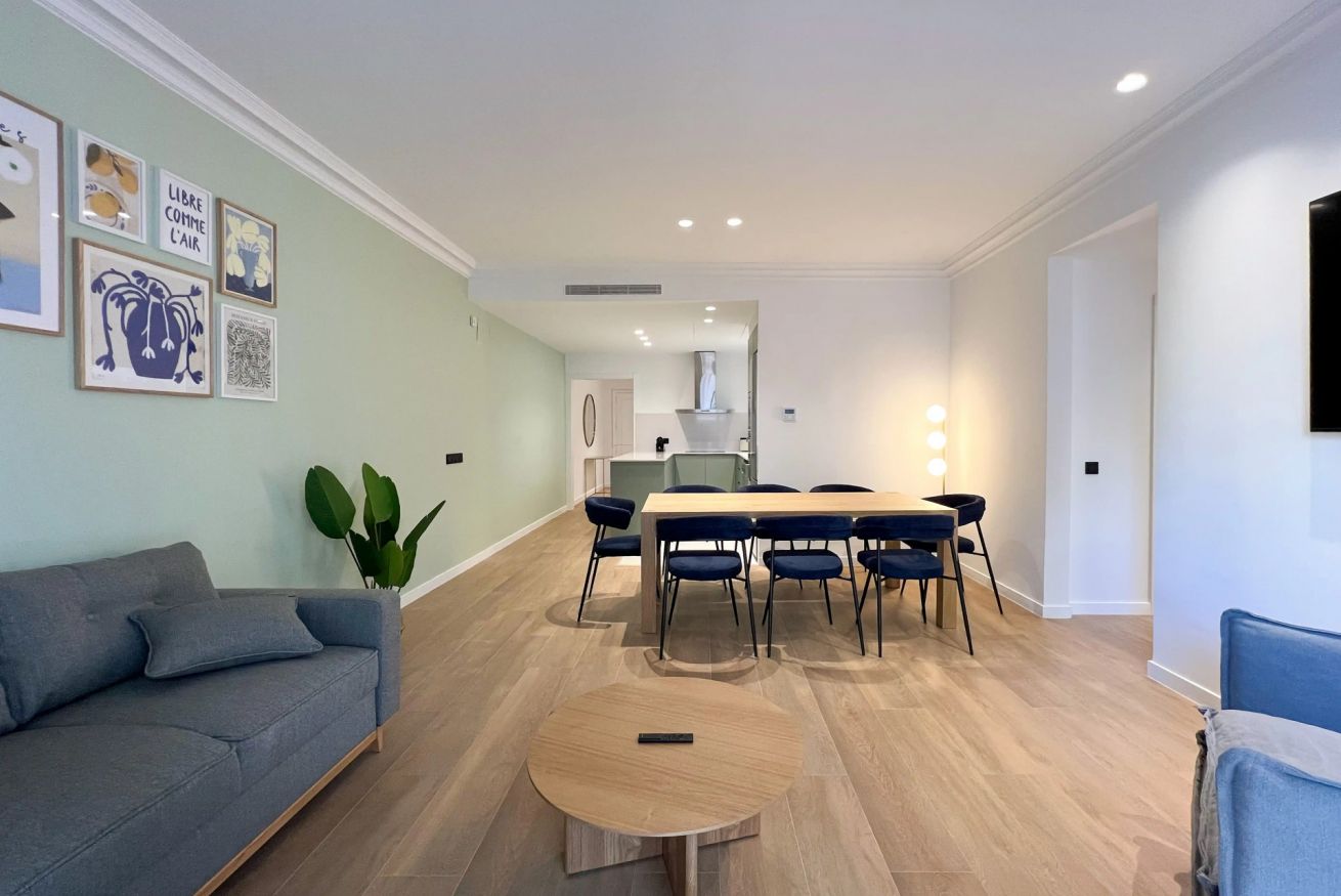 El apartamento cuenta con una decoración moderna, colores alegres y plantas decorativas que aportan frescura y vida a cada rincón.
