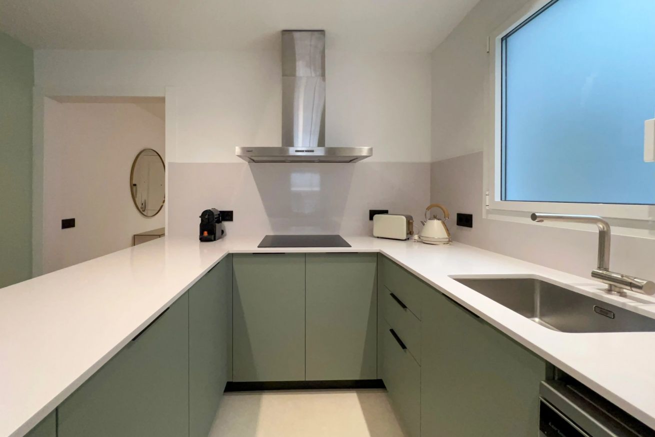La cocina totalmente equipada cuenta con todos los utensilios y electrodomésticos necesarios para preparar comidas caseras.