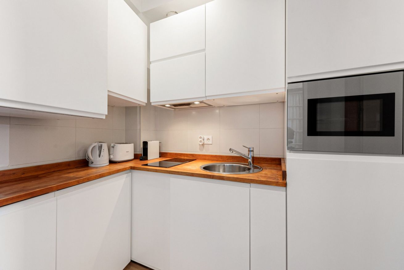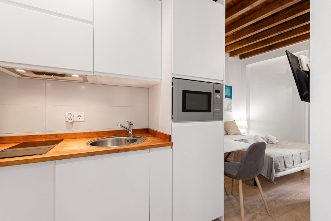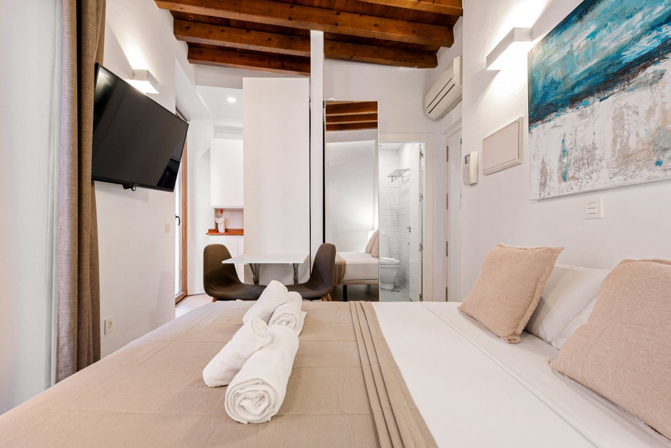 Además de la estética, el estudio está equipado para ofrecer una experiencia práctica y funcional. El baño (4m2)cuenta con acabados contemporáneos y todas las comodidades necesarias para un confort total. Este estudio es perfecto para quienes buscan un lugar cómodo y bien ubicado desde donde explorar Málaga. A pocos pasos de restaurantes, tiendas y sitios históricos, es la base perfecta para descubrir el encanto y la cultura de la ciudad, con la tranquilidad de un refugio elegante al final del día.