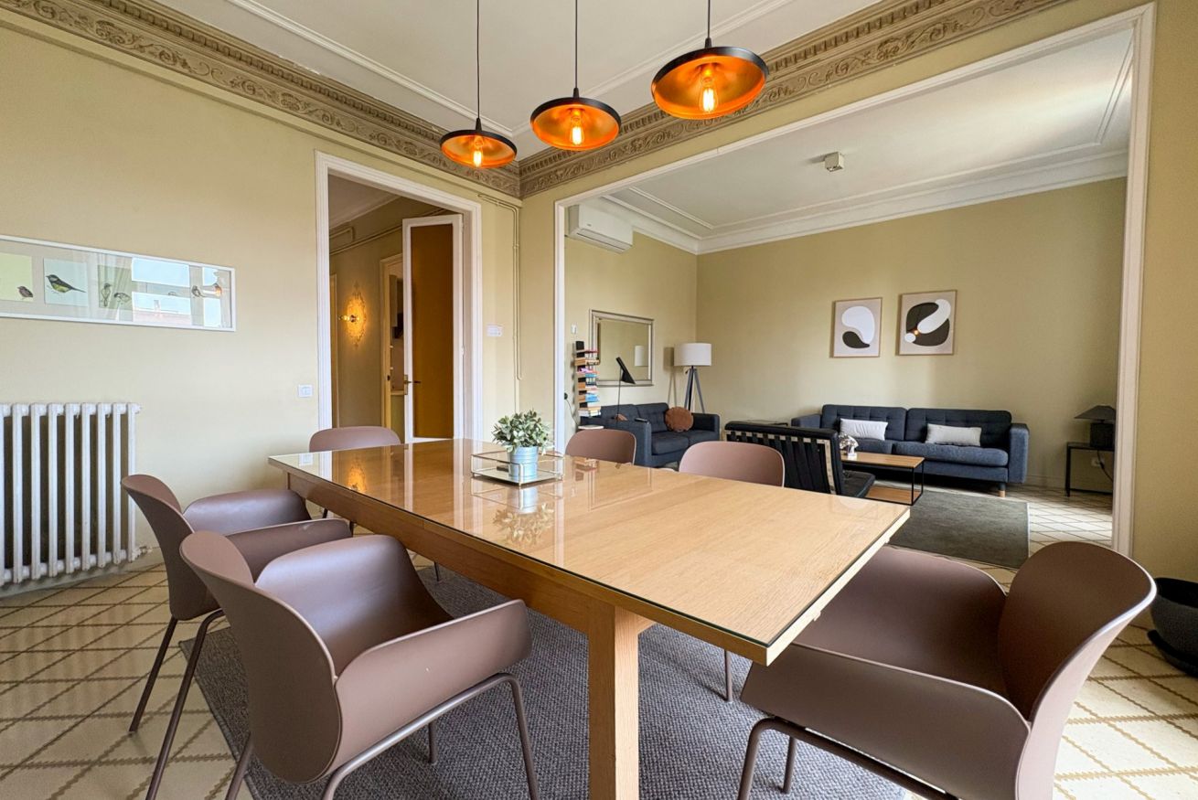 El apartamento es un apartamento tradicional de Barcelona completamente renovado. Exquisita decoración y elección de mobiliario con 3 dormitorios y 2 baños completos, uno con bañera y otro con ducha doble.