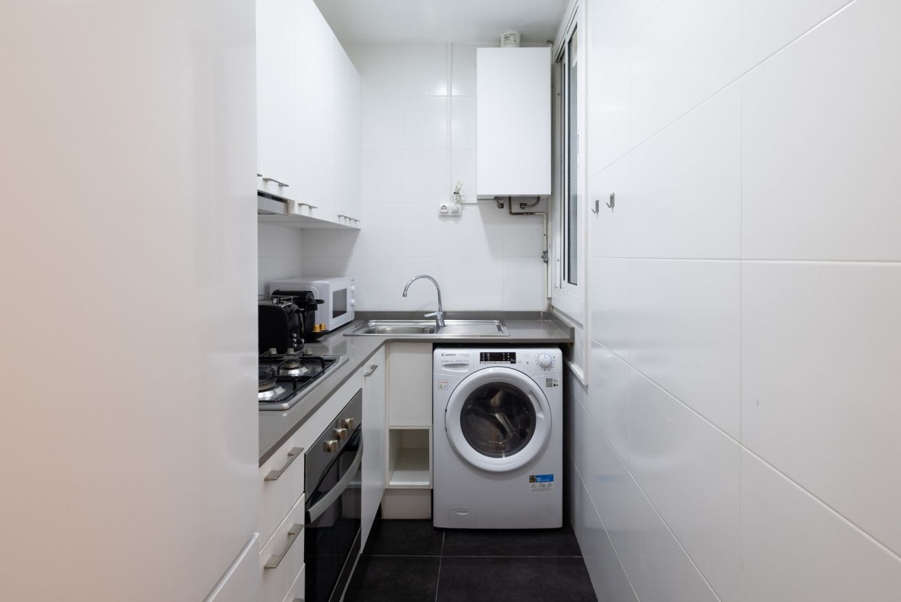 Apartamento ideal para 2 personas, ubicado en el barrio de Sants, en una zona bien comunicada y con el auténtico ambiente local de Barcelona.