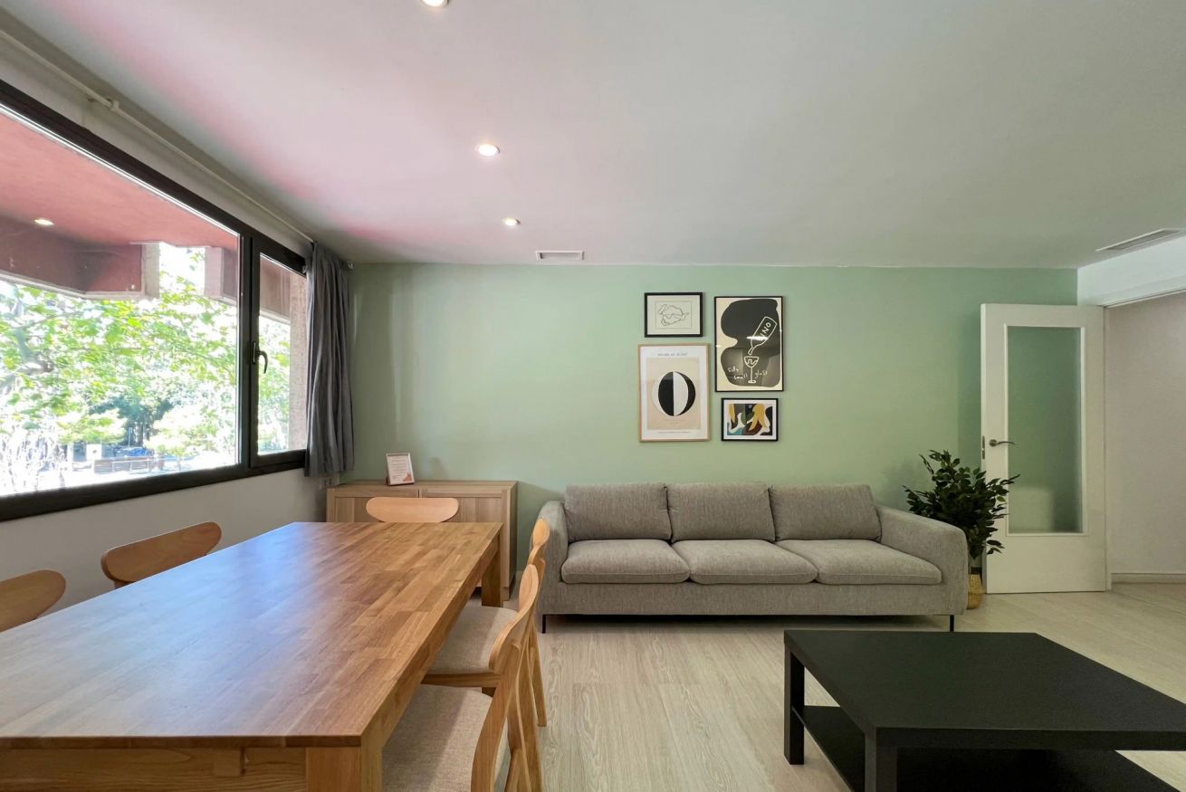 Ubicado en el vibrante barrio de L’Eixample, a pocos pasos de estaciones de tren y metro, tiendas, restaurantes y zonas emblemáticas de Barcelona, este apartamento es la elección perfecta para quienes buscan disfrutar de la ciudad con todas las comodidades del hogar, un diseño cuidado y un espacio pensado para el bienestar físico y mental.