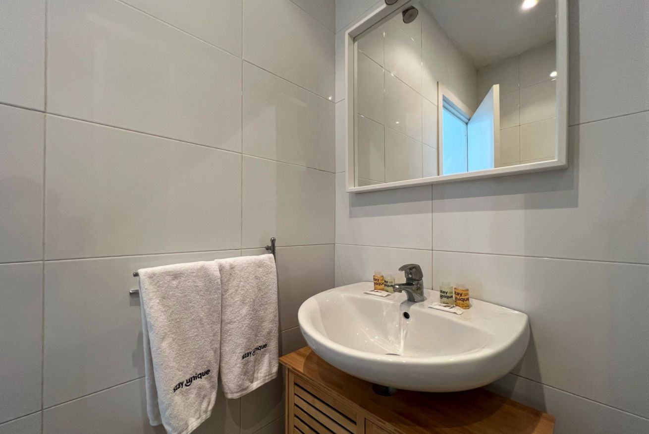 Este espacioso apartamento tiene 1 baño completo. El baño tiene todo lo necesario, desde toallas hasta artículos de aseo.