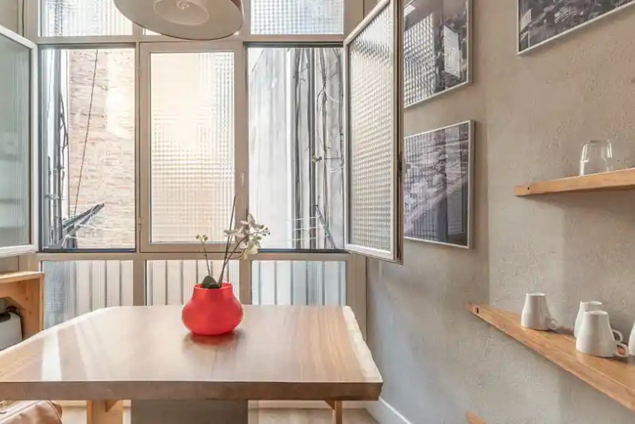 Al entrar, serás recibido por un cálido salón con cómodos asientos y originales elementos estructurales como techos abovedados, vigas de madera y paredes de ladrillo visto.