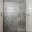 El baño cuenta con ducha, agua caliente, lavamanos y espejo.