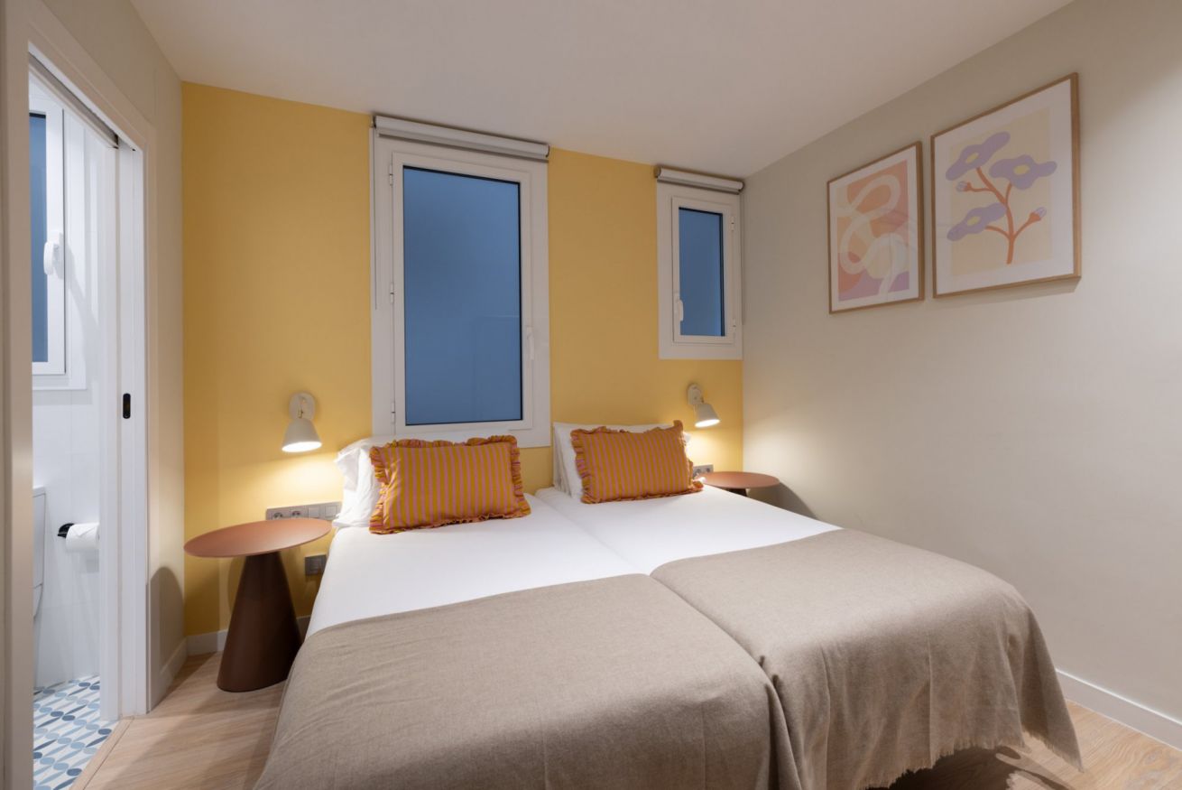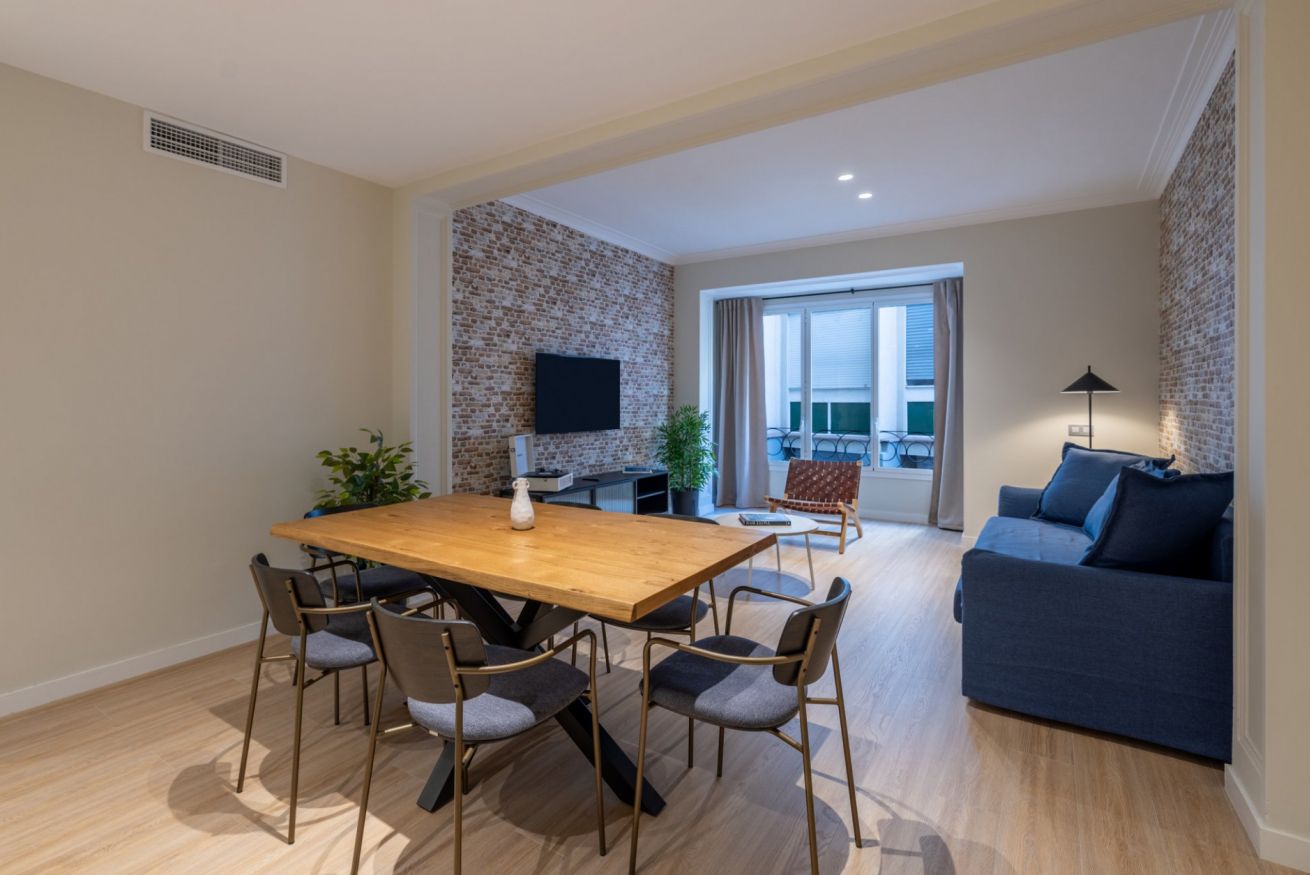 Luminoso y espacioso, este apartamento está perfectamente ubicado para explorar Barcelona. Grandes ventanales inundan los espacios con luz natural, creando una atmósfera cálida y acogedora.