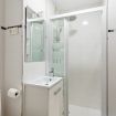 El luminoso salón es el lugar perfecto para relajarte después de un día explorando la ciudad. Aquí encontrarás un cómodo sillón donde podrás descansar, así como un rincón junto a la ventana, ideal para disfrutar de un brindis con vistas a la ciudad. También hemos equipado el apartamento con una televisión que ofrece acceso a Netflix, para que puedas disfrutar de tus series y películas favoritas durante tu tiempo libre. Además, el apartamento cuenta con aire acondicionado para mantenerte fresco en los días calurosos de Málaga.