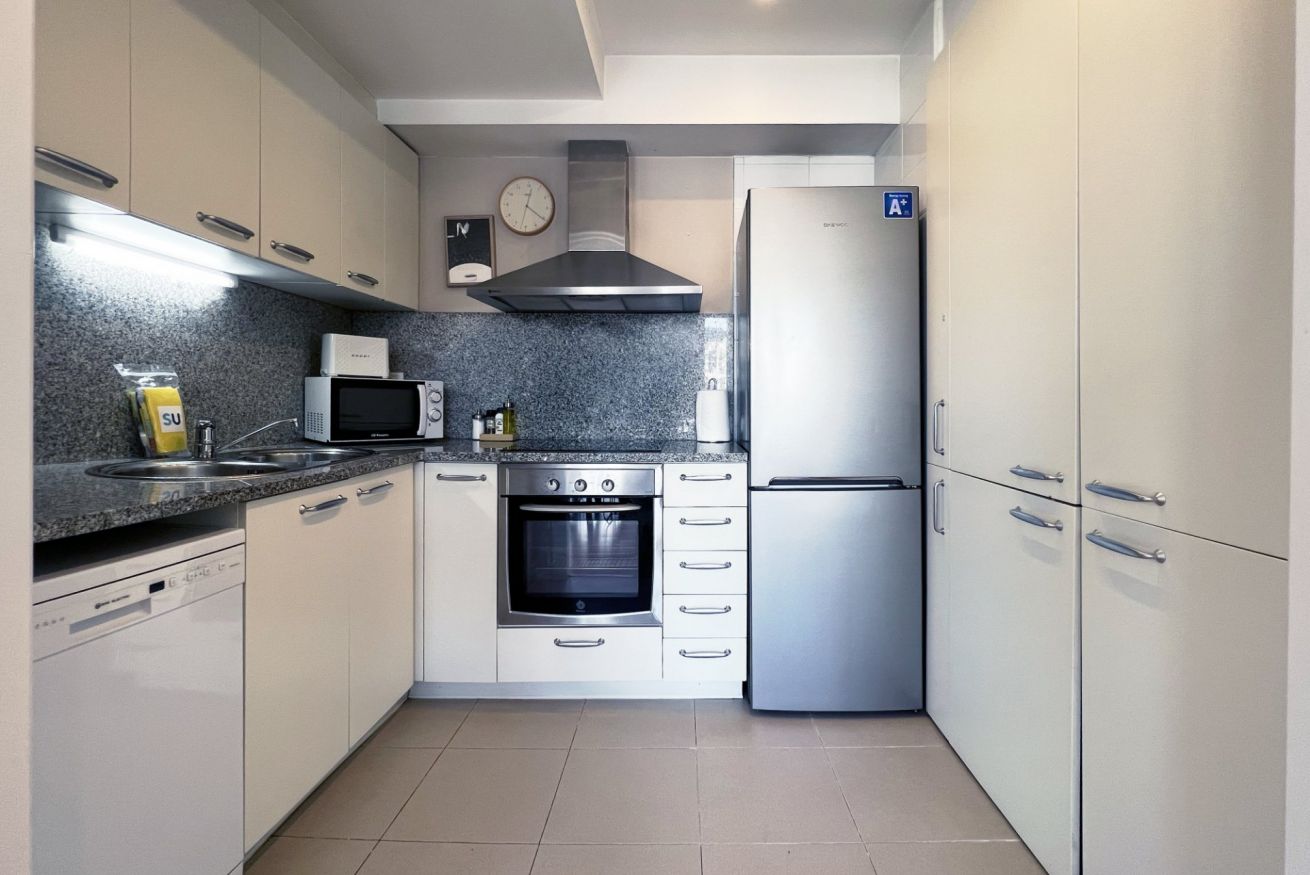 Nuestro apartamento cuenta con 2 dormitorios: uno con dos camas individuales y otro con una cama doble, además de un sofá cama en el salón.