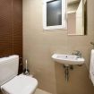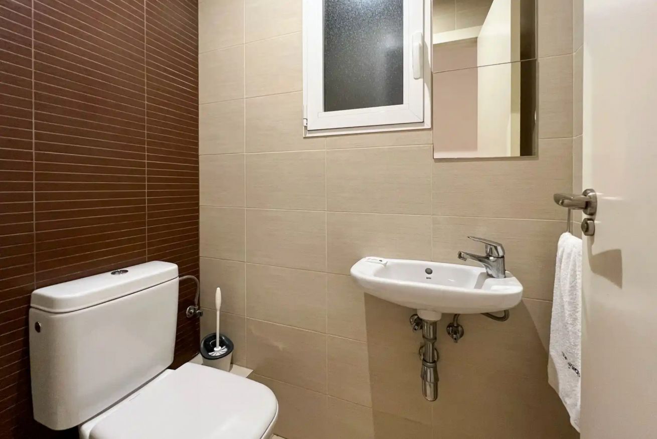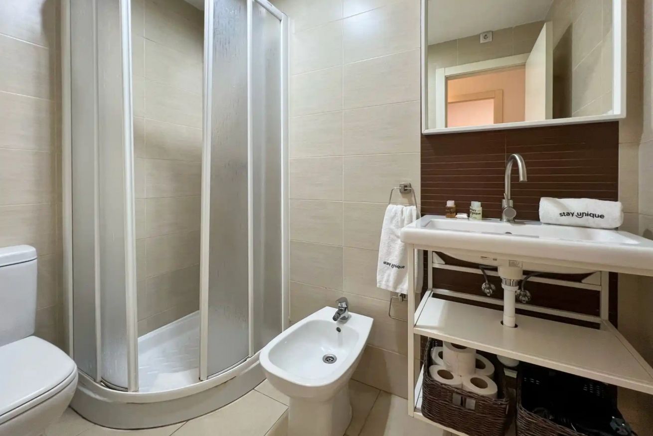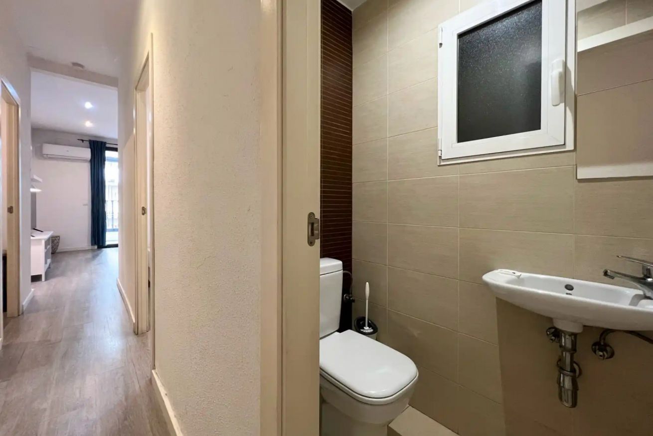 Cuenta con un baño completo con todo lo necesario para mantenerte fresco durante tu estancia en Barcelona. Aparte de esto hay un pequeño cuarto de baño con un inodoro y un lavabo.