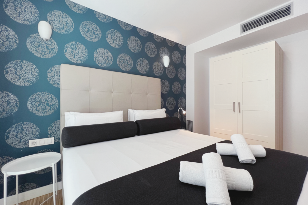 Este impresionante apartamento en Barcelona dispone de dos dormitorios y un sofá cama que permite un espacio habitable de hasta 6 personas. El primer dormitorio está equipado con una cama de matrimonio de alta calidad, ropa de cama de marca y una iluminación natural suave. Las ventanas son grandes y proporcionan a la habitación una luz natural impresionante que asegurará que el día comience de la manera correcta. La segunda habitación está equipada con 2 camas individuales, ideal para niños o amigos. Las habitaciones son cálidas y acogedoras, y un gran lugar para relajarse después de explorar la hermosa ciudad.