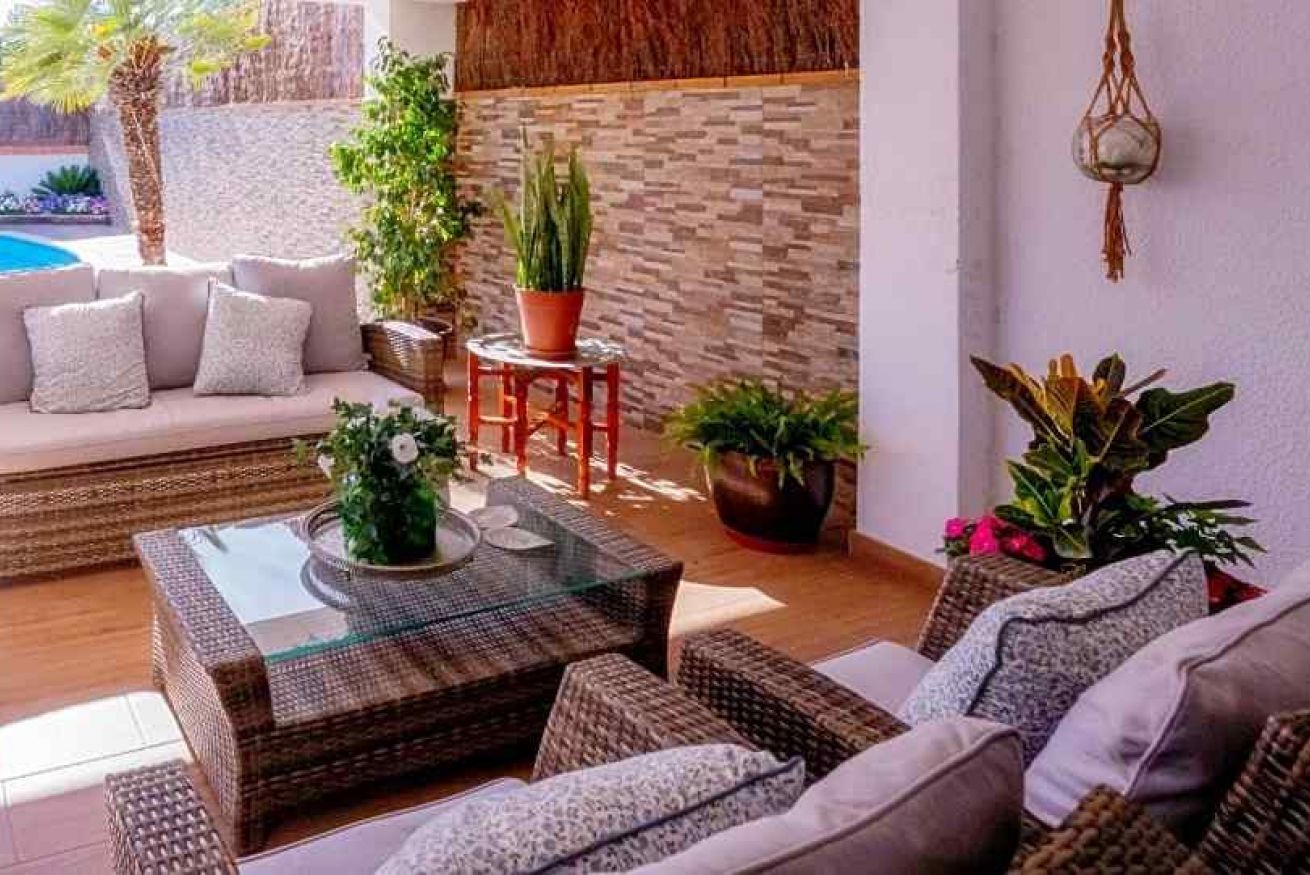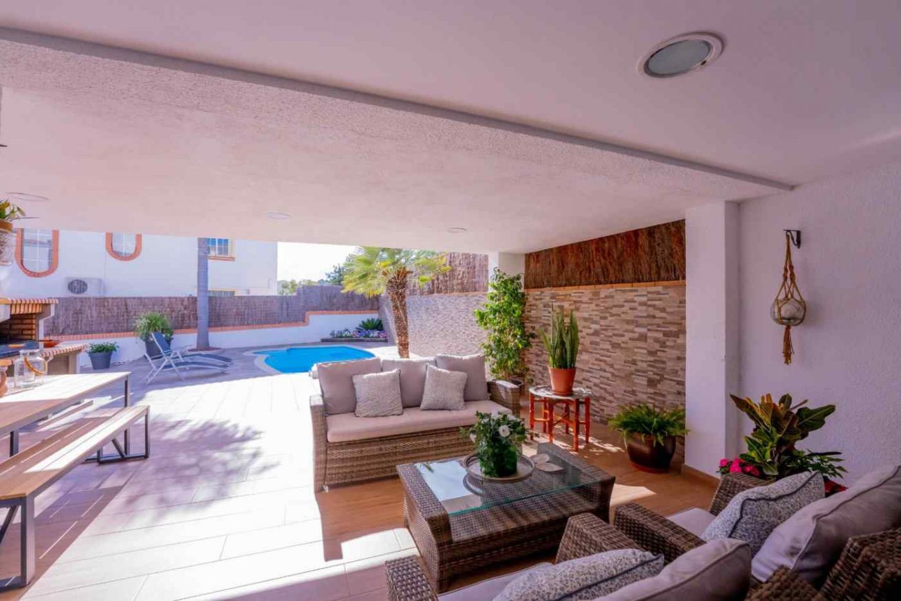 El comedor tiene acceso directo a una bonita terraza con piscina y zona chillout. La propiedad dispone de 4 dormitorios, 2 baños, cocina totalmente equipada, wifi, aparcamiento privado y sala de juegos con mesa de billar y futbolín.