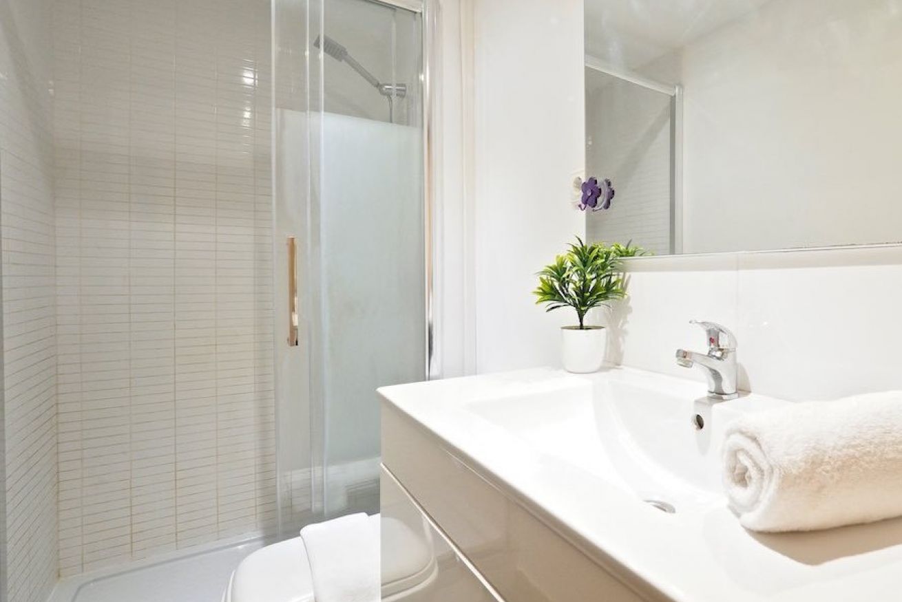 Este espacioso apartamento tiene 1 baño completo. El baño tiene todo lo necesario, desde toallas hasta artículos de aseo. El lavabo del baño se encuentra debajo de un espejo montado en la pared, el baño es un lugar gratificante para prepararse para un ocupado o para relajarse de uno.