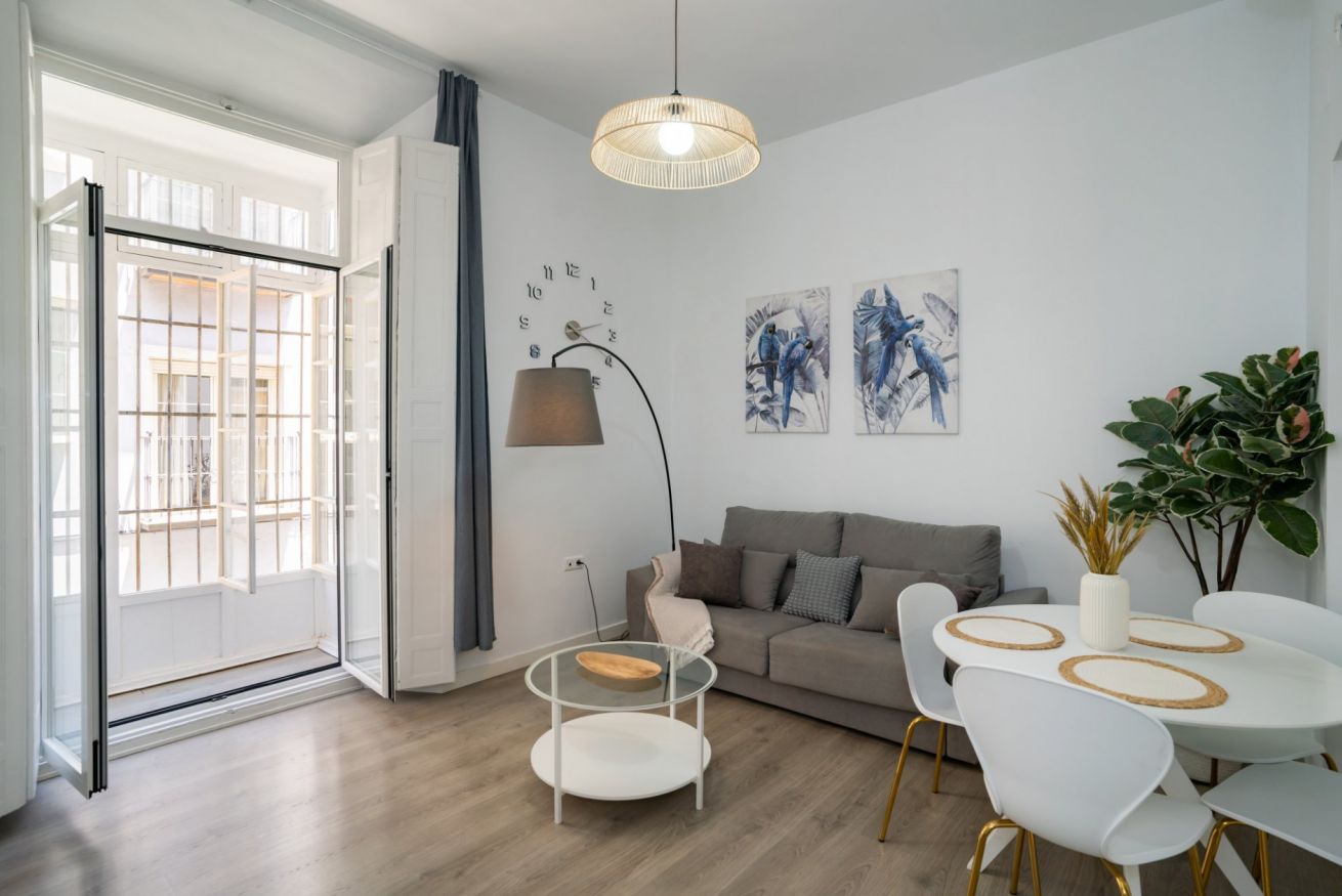 El salón tiene un balcon con vistas a la tranquila calle, ofrece un sofá cama doble en un ambiente moderno y acogedor, además de aire acondicionado para los días más calurosos._x000D_