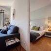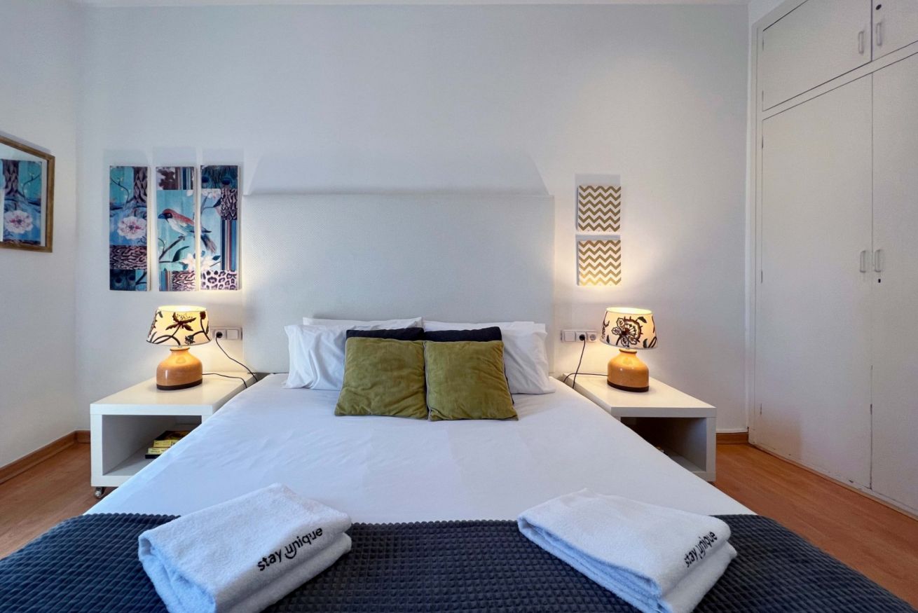 Este apartamento combina confort y estilo en cada rincón. El dormitorio principal está equipado con una cama doble de alta gama, ropa de cama de marca, iluminación suave y arte contemporáneo que aporta carácter al espacio. Sus amplias ventanas dejan entrar abundante luz natural, creando un ambiente perfecto para empezar el día con energía. Cálidas y acogedoras, las habitaciones son el refugio ideal para descansar después de explorar la ciudad.