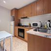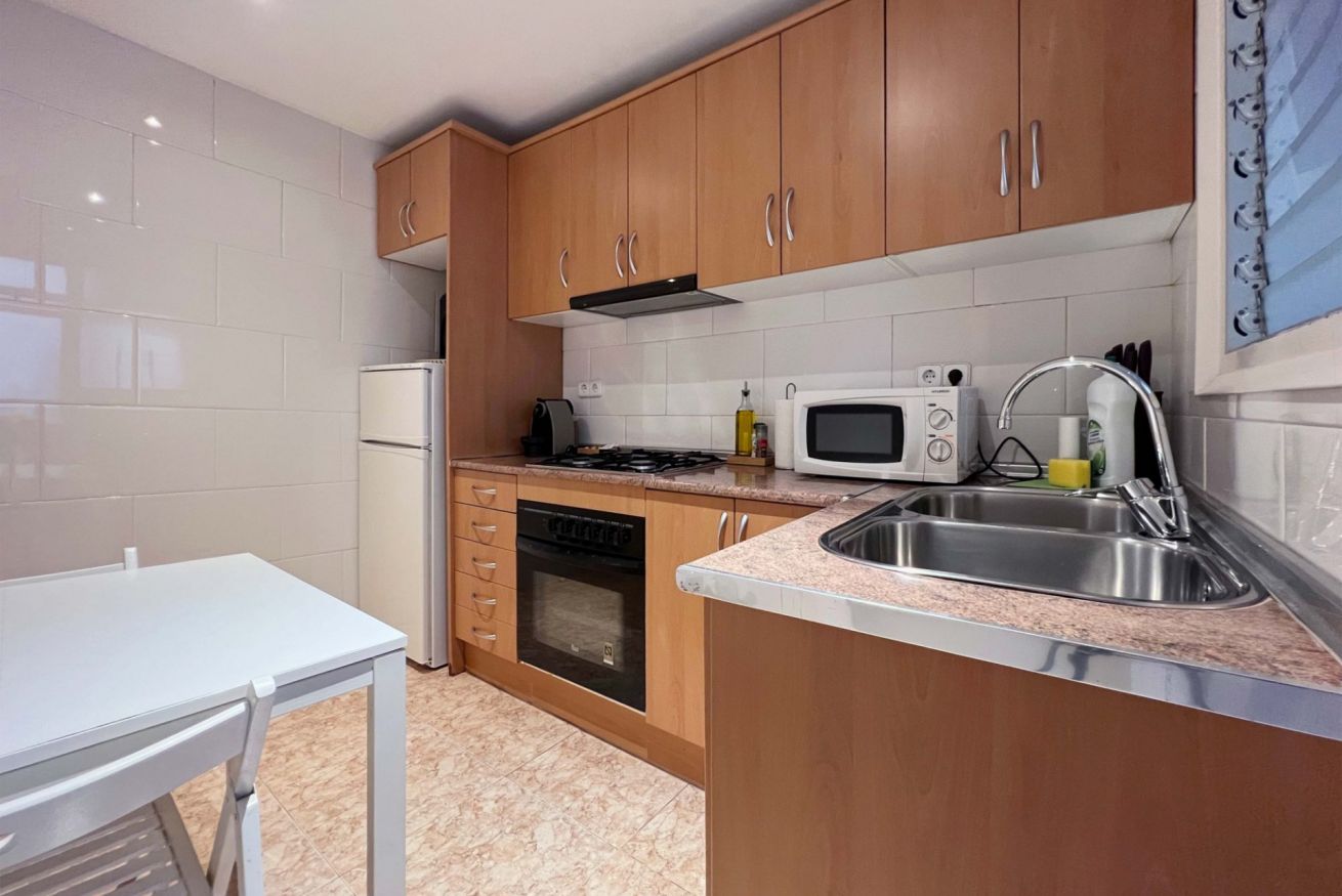 La cocina está completamente equipada con modernos electrodomésticos, incluido un lavavajillas silencioso, y amplios gabinetes personalizados para almacenar tus provisiones. Es el lugar ideal para preparar comidas caseras, aunque Barcelona esté repleta de tentadoras opciones gastronómicas. Por las mañanas, podrás disfrutar de un café en el acogedor rincón de desayuno, con vistas a un hermoso templo.