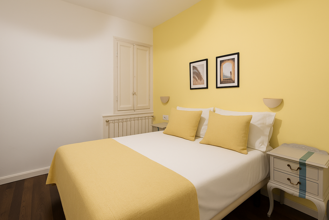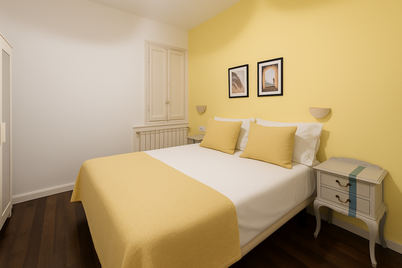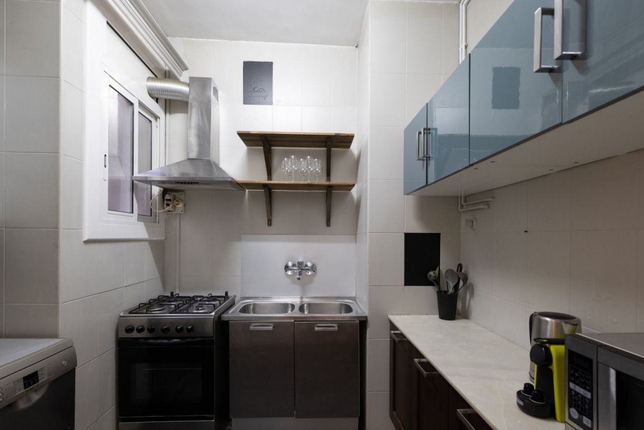 Este apartamento de 3 dormitorios en el tranquilo barrio residencial de Eixample está a poca distancia de las atracciones de la ciudad. Con 1.5 baños y 3 habitaciones con cama doble, este apartamento tiene mucho espacio para 6 personas. La decoración suave de azul pálido, limón y lavanda es ideal para noches tranquilas.