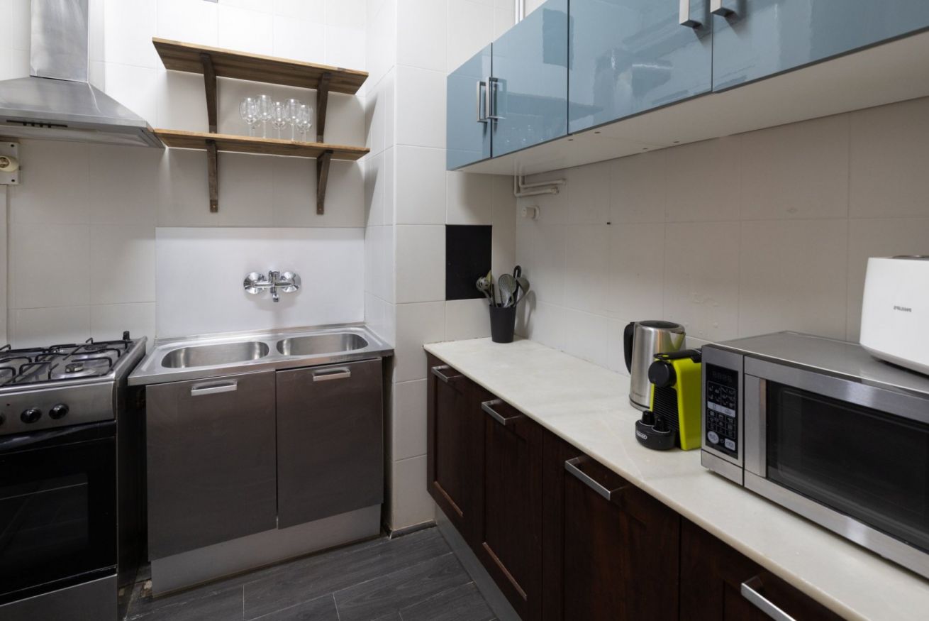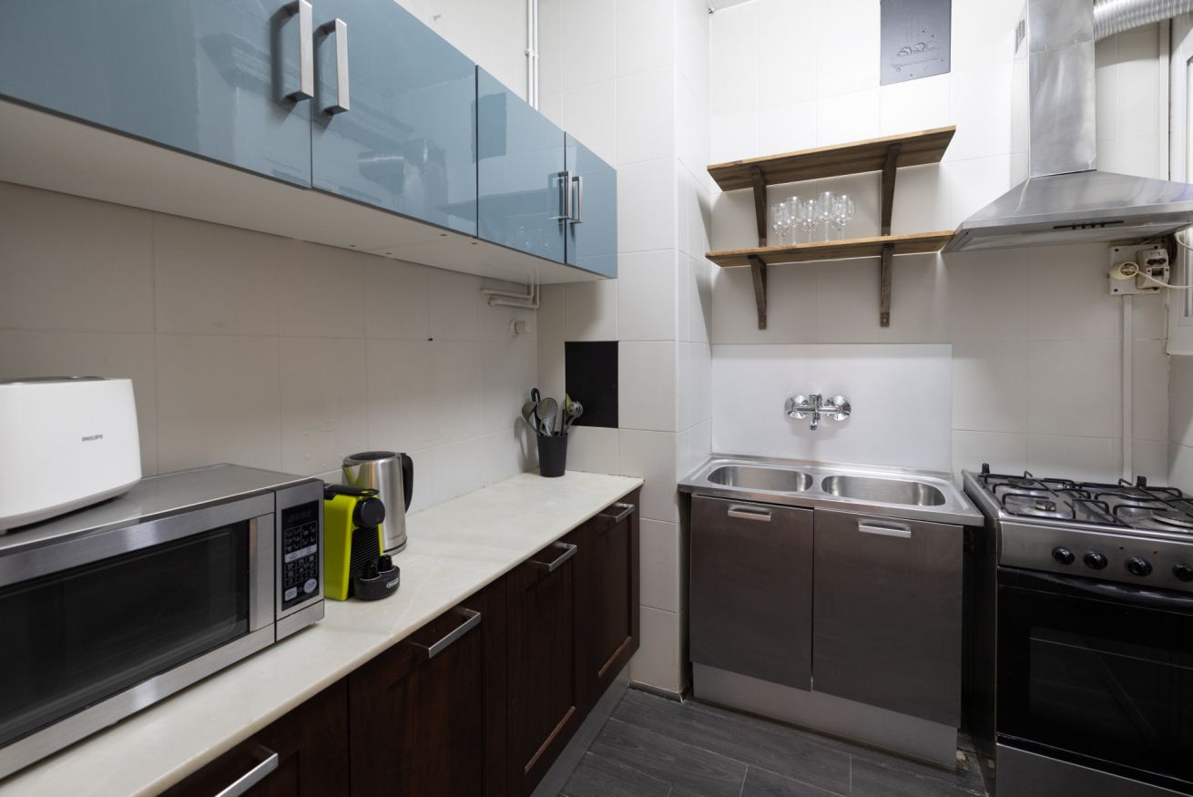 Aunque quieras pasar tu tiempo explorando los famosos restaurantes de la ciudad, a veces no hay nada como una comida casera. Y este apartamento cuenta con una cocina totalmente amueblada con todo lo necesario para facilitar la preparación de las comidas.